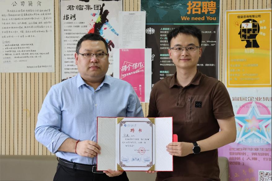 在交流中,史陽對立信會計師事務所在學院班級建設和就業(yè)工作等方面給予的大力支持表示感謝,他著重介紹了2024屆財會專業(yè)畢業(yè)生的人數(shù)規(guī)模、班級建設、學生獲獎等基本情況,誠摯邀請企業(yè)專家經(jīng)常到學校分享行業(yè)經(jīng)驗,并為張航頒發(fā)了“鐵人精神”校外兼職輔導員聘書。