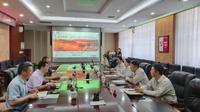 高小明書記對延安煉油廠對此次走訪的熱情接待和多年來接納學(xué)院本科生生產(chǎn)實習(xí)表示由衷的感謝,同時,介紹了西安石油大學(xué)和化學(xué)化工學(xué)院的發(fā)展近況,并對將來進一步深化大學(xué)生實踐基地建設(shè)的構(gòu)想做了深入的交流,期待雙方能夠發(fā)揮各自的優(yōu)勢,進一步提升實踐基地的質(zhì)量和層次,有效促進學(xué)生工程實踐能力和人才培養(yǎng)的質(zhì)量。會中,范崢副院長介紹了化學(xué)化工學(xué)院在學(xué)科專業(yè)建設(shè)、人才培養(yǎng)、科學(xué)研究等方面取得成果,也對延煉多年來積極為學(xué)生實習(xí)實踐提供最大的方便和支持表示感謝,期待雙方以此次在深化合作交流方面達成初步共識為契機,未來能夠進一步擴展合作內(nèi)容。