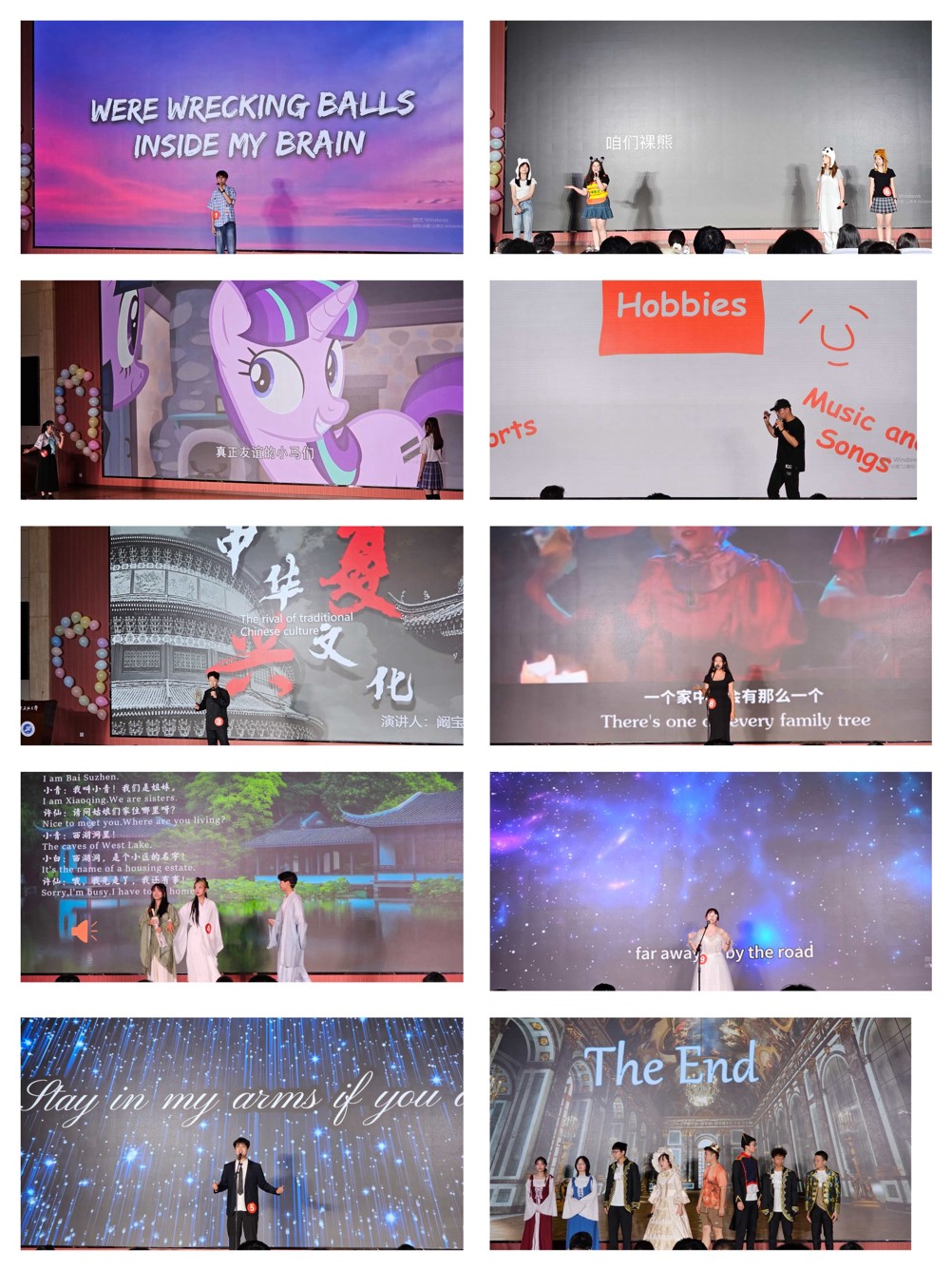 本次大賽經(jīng)過預賽、復賽歷時一個月,最終有十支參賽隊伍進入決賽。決賽中,參賽選手通過歌曲、話劇、演講、配音等形式,為觀眾帶來了一場視聽盛宴。經(jīng)過先后兩輪的激烈角逐,最終大賽評委根據(jù)參賽選手兩回合的現(xiàn)場表現(xiàn),評選出了本次賽事的獲獎選手。新能源學院選手史沐涵配音《Tough Love》榮獲一等獎,電子工程學院選手孫浩琰等7位同學話劇《皇帝的新裝》、電子工程學院選手馬駿中演講《Appreciate Music and Enjoy it》榮獲二等獎,經(jīng)濟管理學院選手艾海提演唱《I Have Nothing》、外國語學院選手黃賀等三位同學配音《咱們裸熊》、理學院選手白慕寧等兩位同學配音《小馬寶莉》榮獲三等獎,其余四組選手榮獲優(yōu)秀獎。