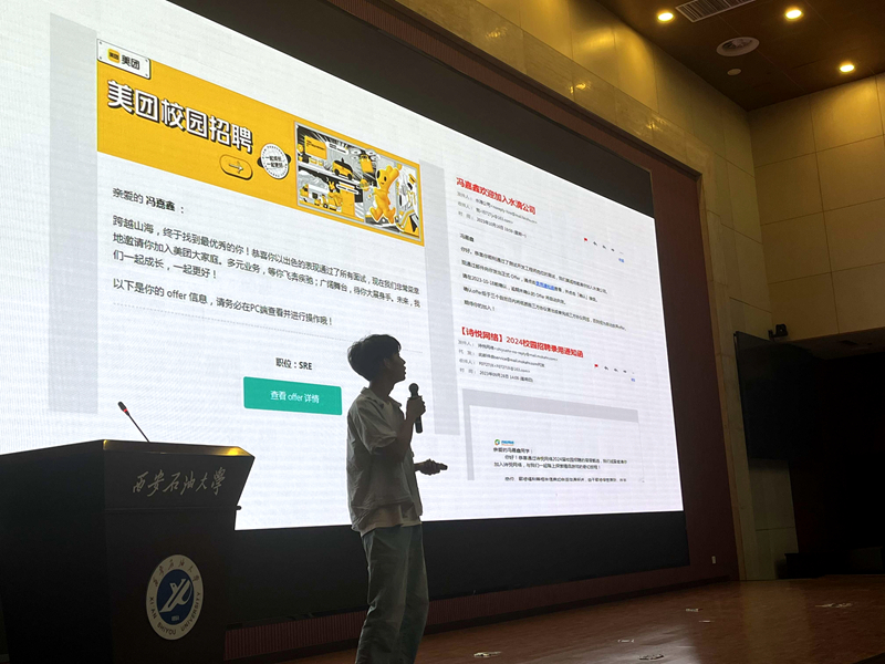 講座伊始,高博首先為同學(xué)們分享了當(dāng)前計(jì)算機(jī)就業(yè)市場(chǎng)的趨勢(shì)和變化,強(qiáng)調(diào)了技能培養(yǎng)的重要性以及如何通過(guò)實(shí)習(xí)和項(xiàng)目經(jīng)驗(yàn)增強(qiáng)自身競(jìng)爭(zhēng)力。隨后介紹了2024屆秋招以及春招的相關(guān)情況,通過(guò)強(qiáng)調(diào)校招呈現(xiàn)出的招聘需求減少、招聘節(jié)奏緩慢和求職人數(shù)下降的現(xiàn)實(shí),提醒同學(xué)們不可盲目樂(lè)觀,要樹立理性平實(shí)的就業(yè)觀念。此外,高博還分析了IT行業(yè)的自身優(yōu)勢(shì),解析IT大廠的招聘要點(diǎn),從筆試、面試、實(shí)習(xí)等環(huán)節(jié)列舉應(yīng)聘者的優(yōu)秀素養(yǎng),強(qiáng)調(diào)不斷提高個(gè)人核心競(jìng)爭(zhēng)力尤為關(guān)鍵。最后,高博希望同學(xué)們立足實(shí)際,找準(zhǔn)定位,保持旺盛的學(xué)習(xí)精力,不斷提升學(xué)習(xí)能力,以良好的精神面貌迎接個(gè)人發(fā)展中的各種挑戰(zhàn)。
