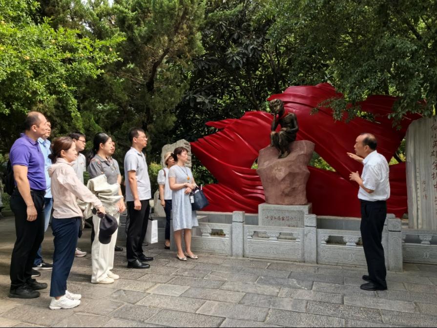 西安市蓮湖公園是陜西省100處紅色教育旅游地之一,是西安市首家廉政教育主題公園,也是隱于鬧市的紅色革命熱土。大家在“見蓮思廉,清風(fēng)廉韻”的文化氛圍中,依次參觀了紅蓮丹心、蓮子家訓(xùn)、蓮語詩堤、蓮韻清風(fēng)四個主題文化區(qū)和蓮湖紅色記憶主題展覽館。在小蘿卜頭雕塑前,談建勤詳細介紹了“小蘿卜頭”宋振中的成長和革命故事,為大家講述了一堂鮮活生動的黨課。在中共西安情報處交通聯(lián)絡(luò)站奇園茶社遺址前,談建勤要求大家要銘記先烈精神,傳承紅色基因,堅定教育初心,鑄牢拒腐防變的思想防線。漫步在蓮花盛開的園內(nèi),老師們還認真學(xué)習(xí)了張載的“橫渠四句”、楊震的“四知拒金”、王陽明“優(yōu)獎龍韜”等歷史名言和文化典故,品味和感悟蓮“廉”于景的獨特魅力。