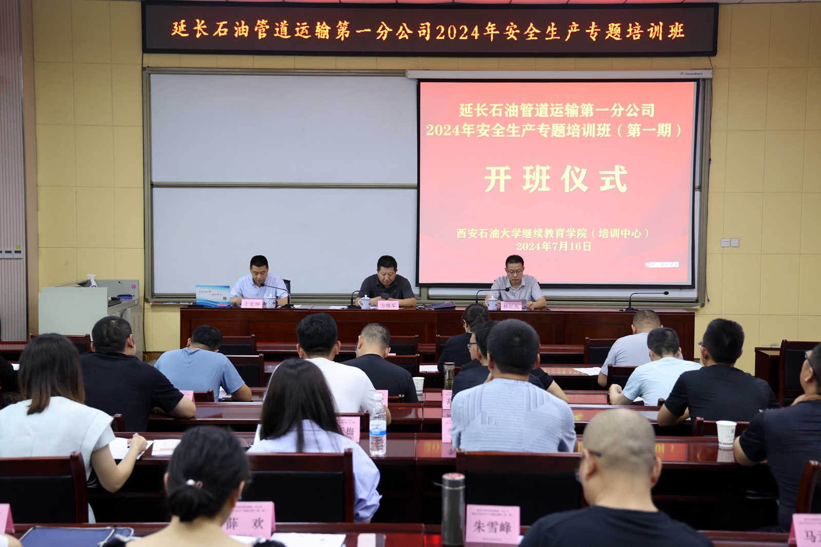 7月16日,由延長石油管道運輸?shù)谝环止荆ㄒ韵潞喎Q“延長管輸一公司”)主辦,我校培訓中心承辦的“2024年安全生產(chǎn)專題培訓班”在我校明德校區(qū)順利開班。延長管輸一公司副總經(jīng)理方維軍,我校繼續(xù)教育學院院長、培訓中心主任林紅先出席開班儀式。來自延長管輸一公司各部門、各輸油站的40名員工參加儀式,儀式由我校繼續(xù)教育學院(培訓中心)培訓部部長于宏坤主持。