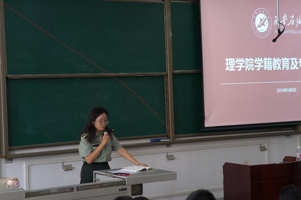為幫助2024級(jí)新生盡快適應(yīng)新環(huán)境,熟悉所學(xué)專業(yè)的培養(yǎng)目標(biāo)、培養(yǎng)方式和畢業(yè)要求,更好地了解本科學(xué)生學(xué)籍管理?xiàng)l例、紀(jì)律處分條例及獎(jiǎng)助條例,做好學(xué)業(yè)規(guī)劃,促進(jìn)學(xué)風(fēng)建設(shè),9月8日下午,理學(xué)院在鄠邑校區(qū)博思樓312教室召開了學(xué)籍教育及專業(yè)教育會(huì)。學(xué)院黨委副書記楊富民、教師代表馮德全、劉孝艷參加教育會(huì)。教育會(huì)由2024級(jí)新生輔導(dǎo)員馬瑤主持。