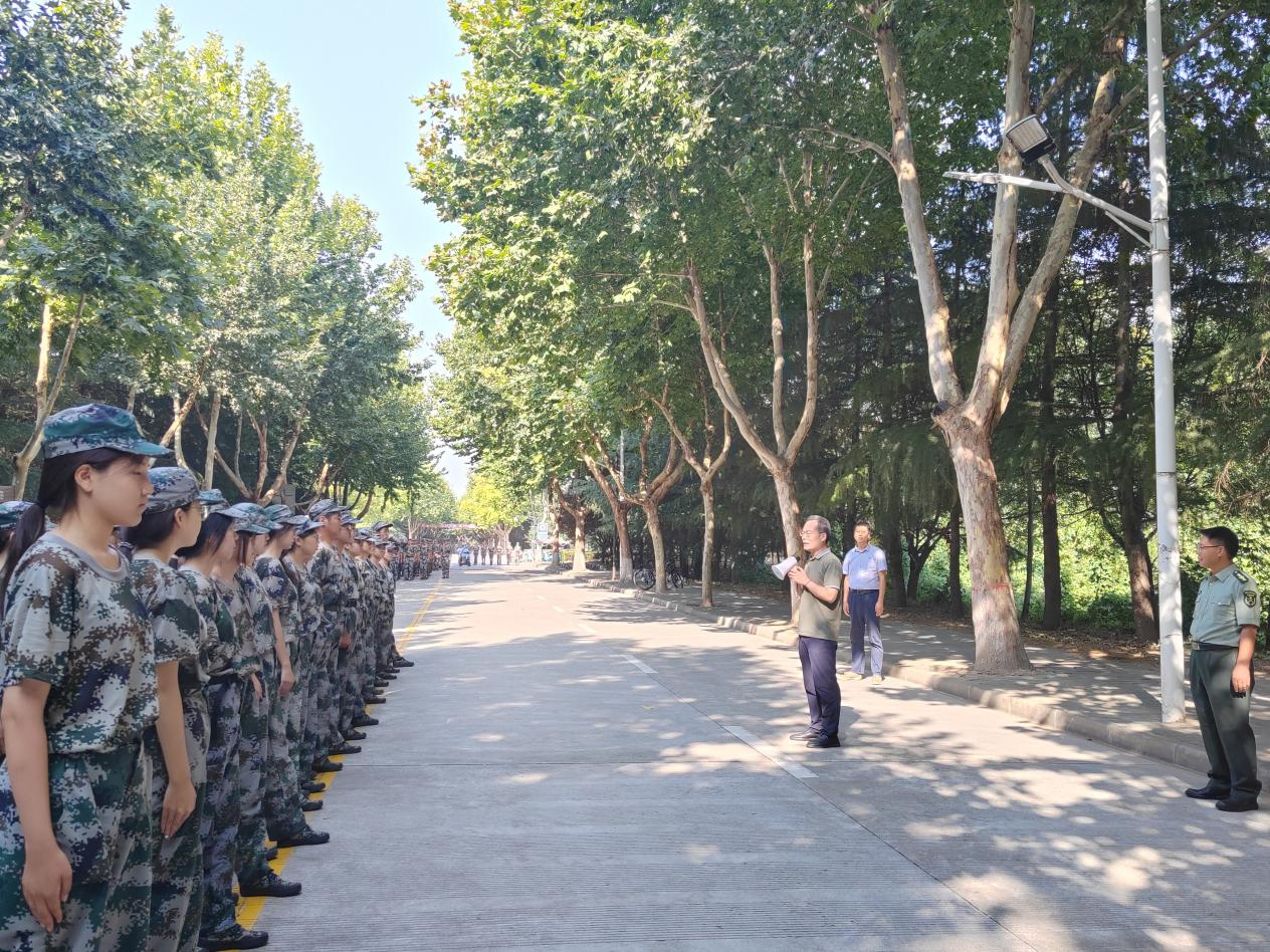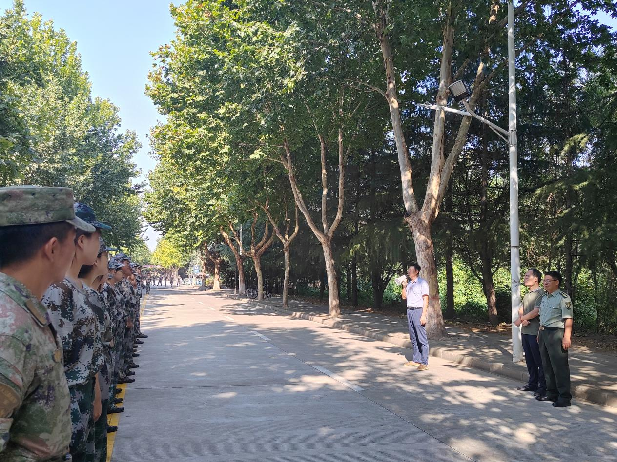 張建高代表學(xué)院向承訓(xùn)教官和輔導(dǎo)員的勤懇工作表示肯定與感謝,對(duì)同學(xué)們?cè)谲娪?xùn)中展現(xiàn)出的不畏艱難、勇于挑戰(zhàn)的精神給予了高度評(píng)價(jià)。他表示,軍事理論的學(xué)習(xí)和軍事技能的訓(xùn)練,有助于磨礪參訓(xùn)學(xué)生的身體素質(zhì)和堅(jiān)強(qiáng)意志,增強(qiáng)其國(guó)防觀念、組織紀(jì)律性和愛(ài)國(guó)主義精神。他強(qiáng)調(diào),要做好充分的保障,時(shí)刻關(guān)注天氣變化和訓(xùn)練情況,切實(shí)保障軍訓(xùn)安全順利進(jìn)行。他希望全體參訓(xùn)學(xué)生持之以恒,刻苦訓(xùn)練,在軍訓(xùn)中不斷收獲進(jìn)步與成長(zhǎng),不斷提升自我。