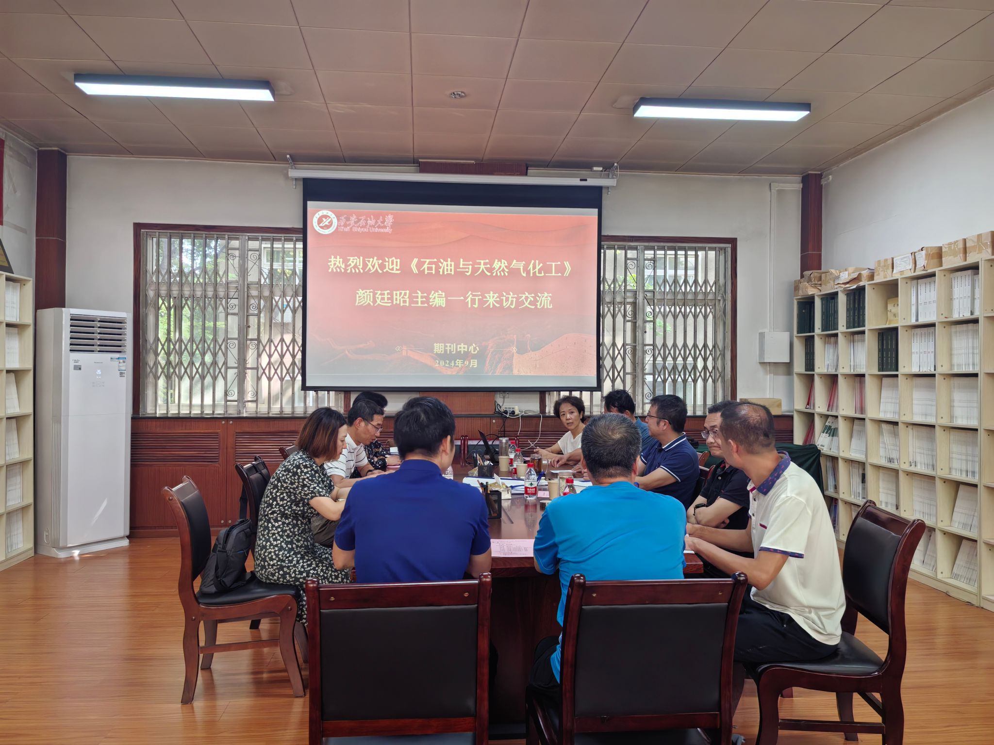9月12日下午,《石油與天然氣化工》主編顏廷昭、副總編輯張倩、編輯部副主任鐘國利一行三人來訪交流,座談會在期刊中心會議室舉行。期刊中心負責人、各編輯部主任及部分編輯參加了交流座談。