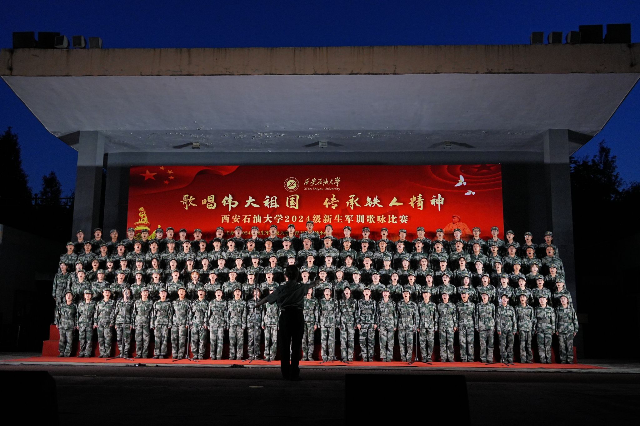為加強(qiáng)學(xué)生的愛國主義教育,磨礪新生的意志品質(zhì),9月12日晚,人文學(xué)院參加了我?!案璩獋ゴ笞鎳瑐鞒需F人精神”2024級新生歌詠比賽。