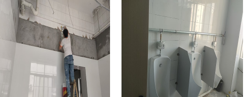 2.衛(wèi)生間改造。為改善教學樓衛(wèi)生間設施老化、滲漏水嚴重、衛(wèi)生狀況差、水壓不足等問題,暑假期間對教學樓部分衛(wèi)生間進行改造。主要改造內容為對衛(wèi)生間地面、防水、小便器、潔具、上下水、排風、洗漱臺等進行改造。本次共涉及衛(wèi)生間9間。