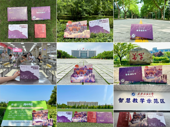 以?;ㄗ先~李為主色調,融入恢弘壯觀的校園地標建筑,在巍巍秦嶺峰巒疊嶂的映襯下,凸顯學校的博大與廣闊,彰顯西石大人能源報國、能源強國的堅定信念,以“大秦嶺+紫葉李=九月有你”為主題的錄取通知書文案和視頻在網(wǎng)絡刷屏,受到考生和社會廣泛好評,累計閱讀量突破10萬次。
