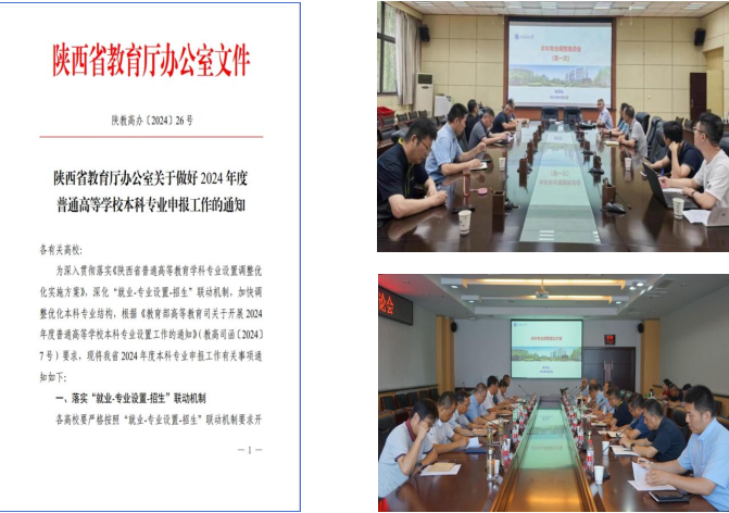 1.積極開展專業(yè)設置優(yōu)化調整工作。根據(jù)教育部《關于開展2024年度專業(yè)設置工作的通知》(教高司函〔2024〕7號)及《陜西省教育廳辦公室關于做好2024年度普通高等學校本科專業(yè)申報工作的通知》(陜教教高辦〔2024〕26號)文件,教務處積極學習領會文件精神,經(jīng)充分研討和調研,下發(fā)了《關于做好2024年本科專業(yè)設置及啟動2025版專業(yè)人才培養(yǎng)方案修訂工作的通知》,并提供了西安石油大學本科專業(yè)招生率、就業(yè)落實率情況統(tǒng)計表(2020-2023年)、2021-2023年高校專業(yè)情況統(tǒng)計表、專業(yè)設置優(yōu)化調整參考意見等資料,積極促進各院(系)開展設置調整計劃。8月4日、8月29日,學校2次召開了本科專業(yè)調整專題研討會,張君濤副校長對本科專業(yè)調整優(yōu)化作了全面部署;9月2日,學校召開院系專業(yè)調整務虛會并進一步研討確定了本年度專業(yè)調整方案。
