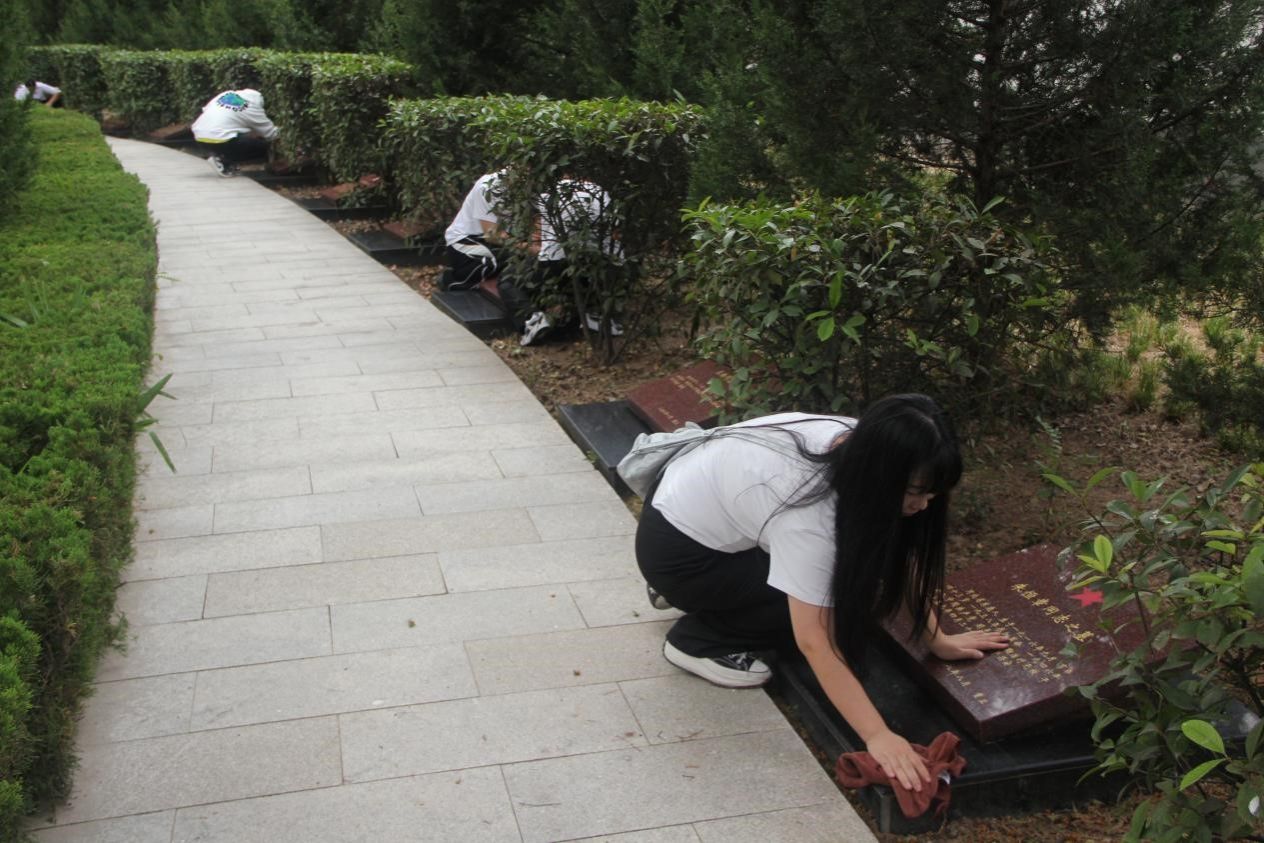活動(dòng)第三項(xiàng),全體師生擦拭陵園烈士墓碑。大家懷著崇敬的心情,徒手清理墓碑周圍的雜草和垃圾,認(rèn)真擦拭所有烈士墓碑,讓墓碑一塵不染,以此來(lái)表達(dá)對(duì)烈士偉大精神的深切思念和緬懷。