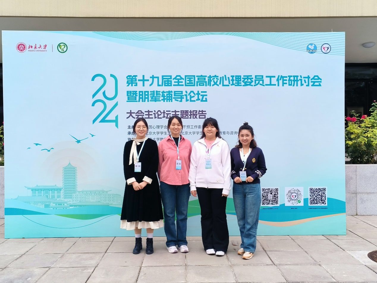 為加強(qiáng)高校心理委員工作隊(duì)伍建設(shè),探索心理委員工作以及朋輩心理輔導(dǎo)的新方法、新路徑,促進(jìn)各高校之間心理健康服務(wù)理論與實(shí)踐工作的交流與合作,101618日,由中國(guó)心理學(xué)會(huì)心理危機(jī)干預(yù)工作委員會(huì)全國(guó)高校心理委員研究協(xié)作組主辦的第十九屆全國(guó)高校心理委員工作研討會(huì)暨朋輩輔導(dǎo)論壇在北京大學(xué)舉行,我校學(xué)生心理成長(zhǎng)指導(dǎo)中心專職教師趙晶、土木工程學(xué)院心理專干奴麗艷木?夏甫開(kāi)提,2023校級(jí)優(yōu)秀心理委員代表計(jì)算機(jī)學(xué)院計(jì)科2102李坤、經(jīng)濟(jì)管理學(xué)院金融CFA2201周昱竹前往參會(huì)。李坤、周昱竹同時(shí)入選《2024全國(guó)百名心理委員風(fēng)采展》。