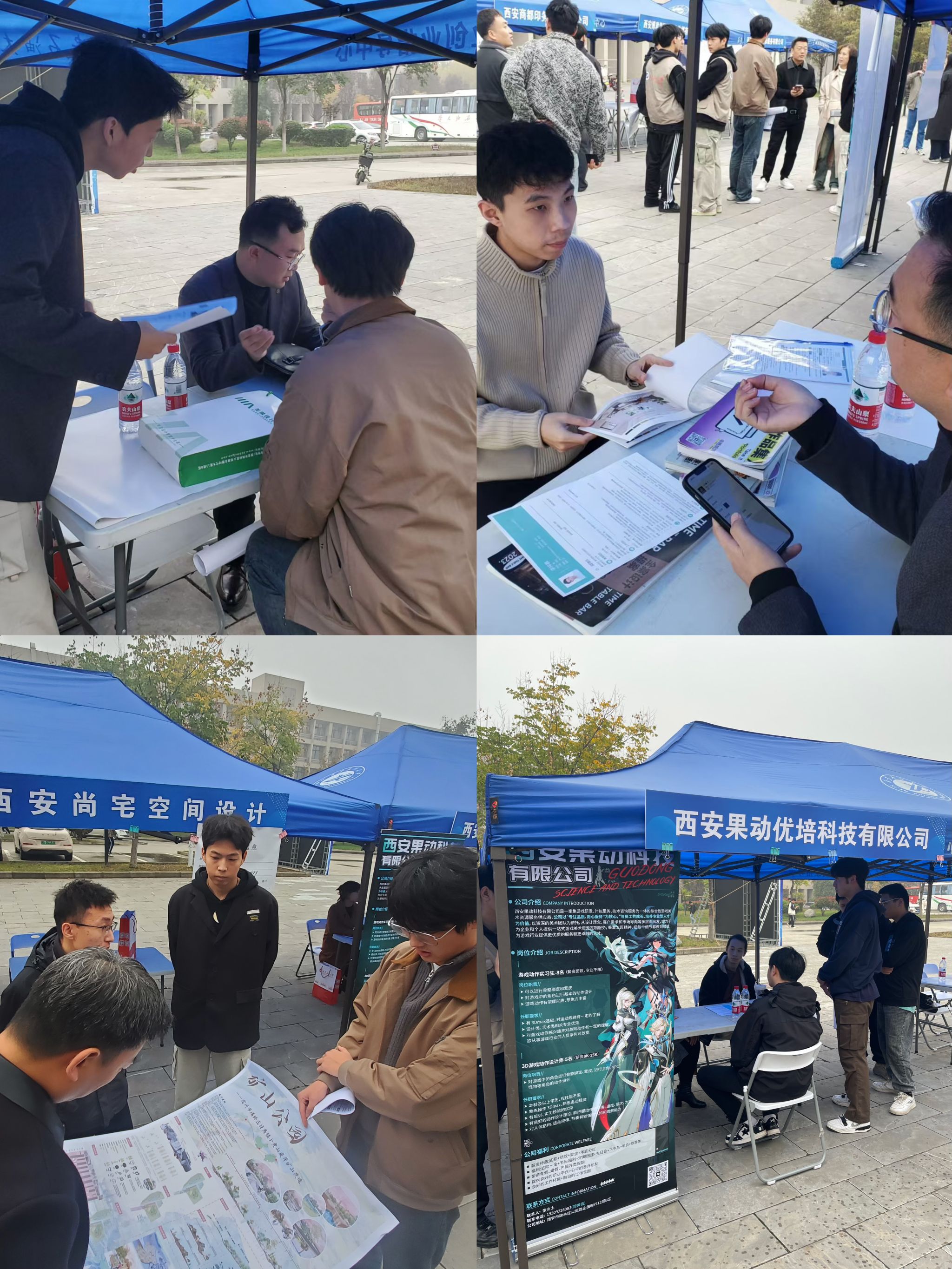 為拓寬畢業(yè)生就業(yè)渠道,搭建用人單位與設(shè)計專業(yè)畢業(yè)生的雙向交流平臺,11月1日上午,在西安石油大學(xué)就業(yè)指導(dǎo)中心的大力支持下,人文學(xué)院攜手西安美果教育科技有限公司,在鄠邑校區(qū)江漢林廣場聯(lián)合舉辦設(shè)計類專場招聘會。人文學(xué)院黨委書記余小勇、全體學(xué)工干部全程參會,與用人單位及畢業(yè)班學(xué)生進(jìn)行深入的溝通交流,并給予現(xiàn)場指導(dǎo)。