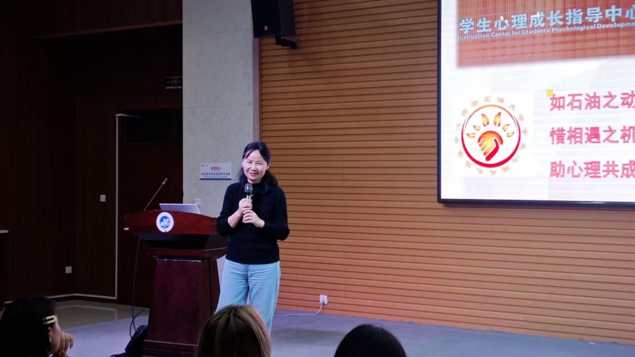 培訓(xùn)活動以“握手”、“言歡”熱身開場,活躍了現(xiàn)場培訓(xùn)氣氛,大家進入了比較輕松愉悅的狀態(tài)。隨后,肖瓊老師介紹了“油緣”心理的“如石油之動力、惜相遇之機緣、助心理共成長”的文化理念,學(xué)生心理成長指導(dǎo)中心的場地、設(shè)備、人員及咨詢預(yù)約方等。