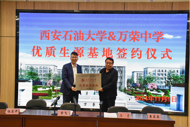 雙方與會領(lǐng)導(dǎo)簽署了優(yōu)秀生源基地合作協(xié)議,李飛為山西省萬榮中學(xué)授予“西安石油大學(xué)優(yōu)秀生源基地”牌匾并贈送禮物鉆井模型,任志平向山西省萬榮中學(xué)送上2024高考喜報。李飛表示將進(jìn)一步加強(qiáng)與萬榮中學(xué)的緊密聯(lián)系,發(fā)揮學(xué)校優(yōu)勢資源,完善人才協(xié)作培養(yǎng)機(jī)制,不斷深化教育教學(xué)改革,努力提升辦學(xué)水平,打造新高考背景下大學(xué)與中學(xué)拔尖人才培養(yǎng)共同體。