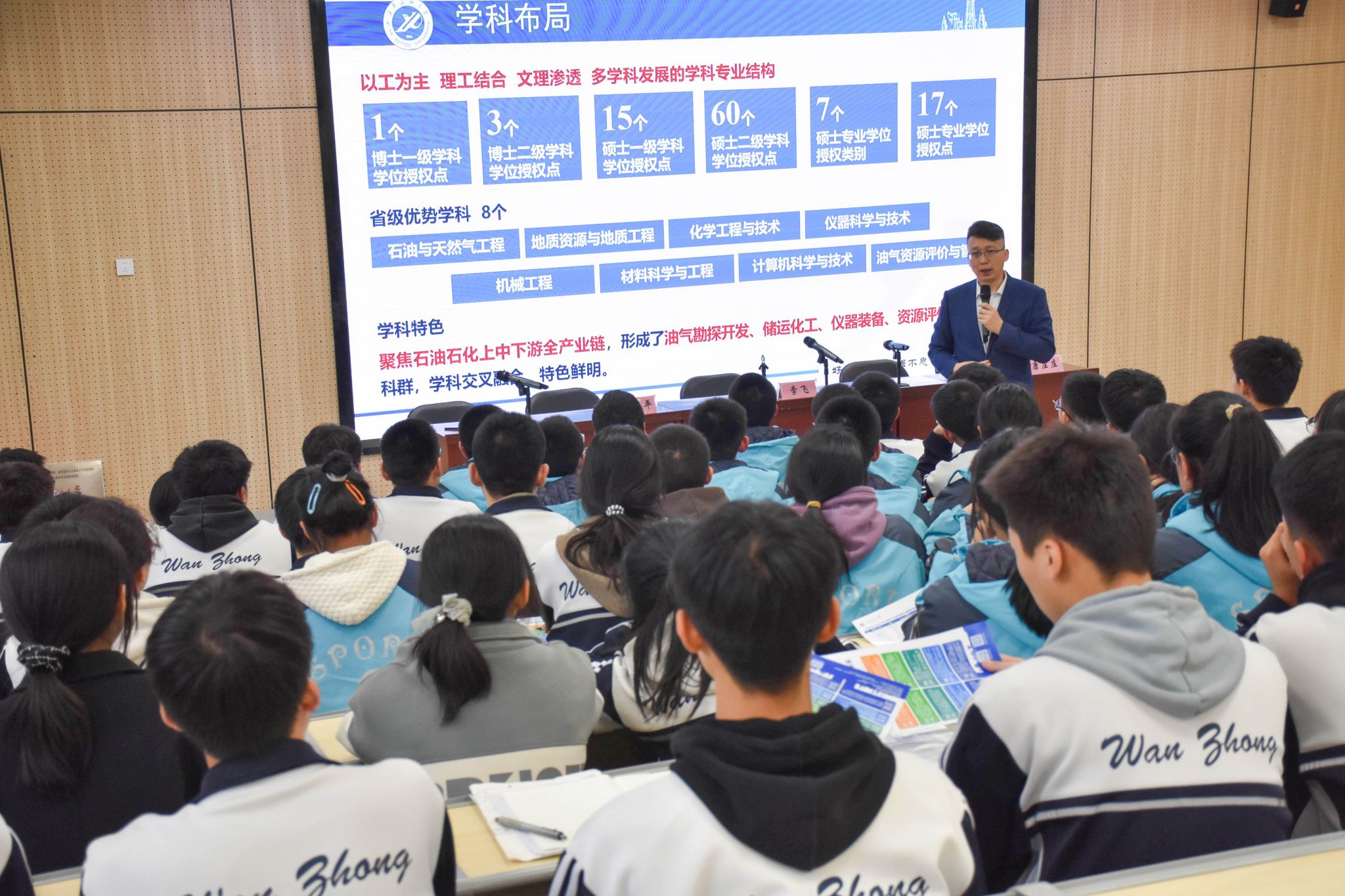 李飛對山西省萬榮中學(xué)的熱情接待表示感謝,結(jié)合自身科研經(jīng)歷,就油氣資源開發(fā)的現(xiàn)狀、前景和技術(shù)挑戰(zhàn)為高三學(xué)生作了一場深入淺出、生動活潑的報告,同時邀請參會師生共同觀看了學(xué)校宣傳片,并對我校的辦學(xué)特色、學(xué)科專業(yè)、人才培養(yǎng)、校園文化等情況進(jìn)行了詳細(xì)介紹,現(xiàn)場氣氛熱烈。李飛鼓勵高三學(xué)子志存高遠(yuǎn)、珍惜時光、發(fā)奮努力,積極投身到祖國能源事業(yè),為中華民族的偉大復(fù)興貢獻(xiàn)自己的力量。