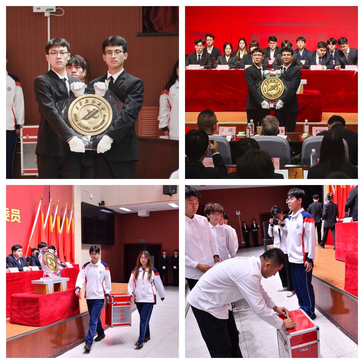 新一屆學生會委員會委員依次上臺與上屆學生會委員會委員握手致謝并合影留念