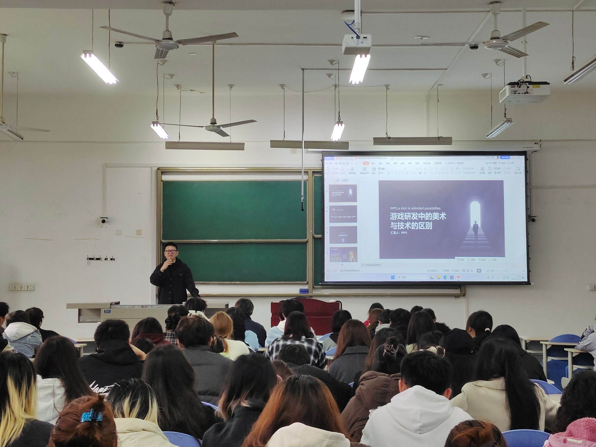 為幫助設(shè)計(jì)專業(yè)學(xué)生提前考慮發(fā)展方向,了解游戲行業(yè)形勢(shì),提升就業(yè)競(jìng)爭(zhēng)力,樹(shù)立正確擇業(yè)觀。11月13日下午,人文學(xué)院邀請(qǐng)西安果動(dòng)優(yōu)培在鄠邑校區(qū)博思樓B103開(kāi)展了主題為《游戲美術(shù)攻略指南》專題講座,2022級(jí)、2023級(jí)設(shè)計(jì)專業(yè)200余名學(xué)生參加。