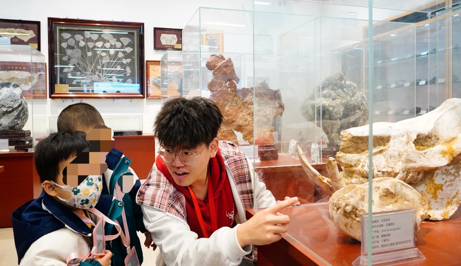 志愿者向小朋友們講解古生物標本