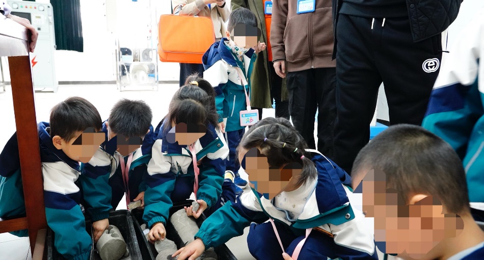 小朋友們觀察鉆井巖心樣品