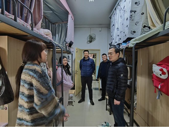 走訪過程中,張建高、陳武、邱嶺分別與同學(xué)們進行親切交談。從住宿飲食、生活習(xí)慣、發(fā)展規(guī)劃等多方面深入了解學(xué)生情況。耐心傾聽同學(xué)們的心聲,及時為學(xué)生們答疑解惑,解決問題。同時,提醒同學(xué)們在日常生活中要注重勞逸結(jié)合,鼓勵同學(xué)們在宿舍要相互關(guān)心,相互幫助,共同營造一個和諧、溫馨的寢室氛圍。