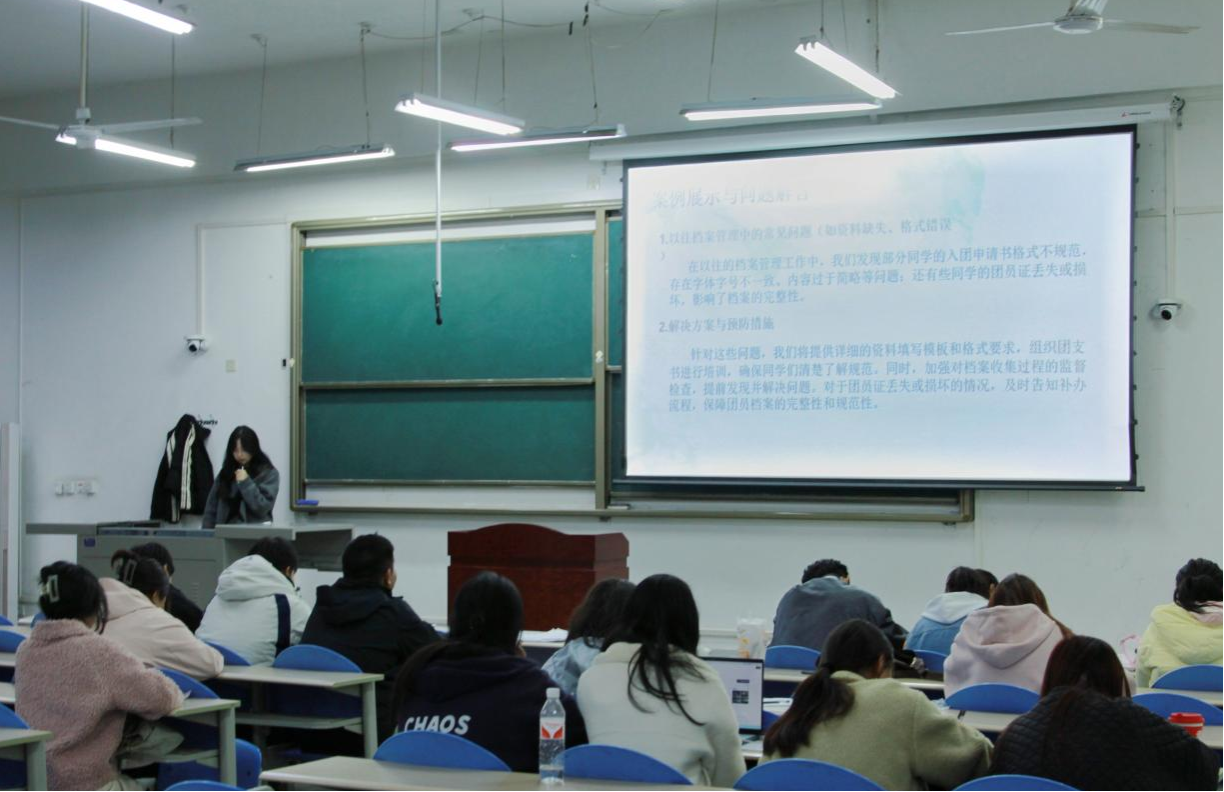 11月20日,人文學院團委學生會組織部部長郭雨涵帶來了“團務工作實務”主題講座,2024級全體團支書、輔導員助理以及組織部干事參加。本次講座圍繞著團務工作的實際操作展開,為大學生團干部講解了具體的基礎團務工作操作方法與智慧團建的使用說明。在講座中,郭雨涵列舉了日常工作可能面臨的問題,并且給出了解決方法,她強調,在收集資料的時候確保內容和數(shù)量正確是至關重要的。對于智慧團建這一網(wǎng)絡系統(tǒng),她表示,智慧團建是現(xiàn)代團務工作的重要信息化平臺,也是各位團干部展開團務工作的重要網(wǎng)絡陣地,各位團干部需要牢牢掌握系統(tǒng)的使用方法,運用網(wǎng)絡工具更好地服務同學。