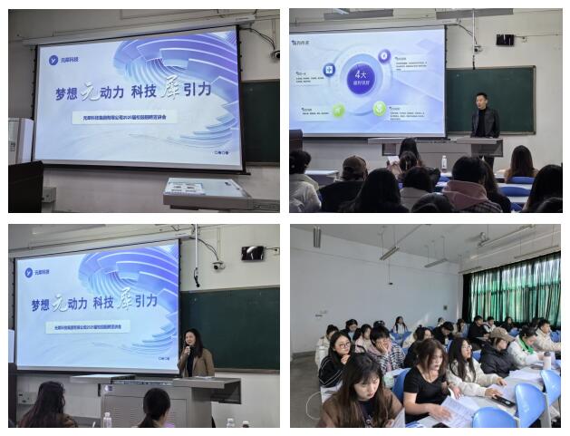招聘會上,犀為科技總經(jīng)理趙團(tuán)飛及企業(yè)人力總監(jiān)舒敏介紹了公司的企業(yè)文化、經(jīng)營項(xiàng)目、發(fā)展規(guī)劃和人才招募機(jī)制,并就同學(xué)們關(guān)注的職業(yè)發(fā)展、工資待遇等問題進(jìn)行了耐心地解答。