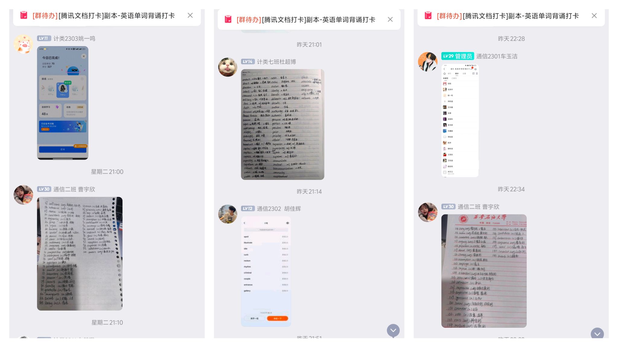英語(yǔ)四級(jí)考試,單詞是基本功。為了夯實(shí)備考學(xué)生的單詞基本功,學(xué)院分年級(jí)組織學(xué)生開(kāi)展“每日英語(yǔ)單詞背誦打卡”活動(dòng),將學(xué)生喜聞樂(lè)見(jiàn)的“打卡”方式與每日英語(yǔ)學(xué)習(xí)有效結(jié)合,變“單兵作戰(zhàn)”為“集體同頻”,有效增強(qiáng)了學(xué)生堅(jiān)持的能動(dòng)性和學(xué)習(xí)的主動(dòng)性。