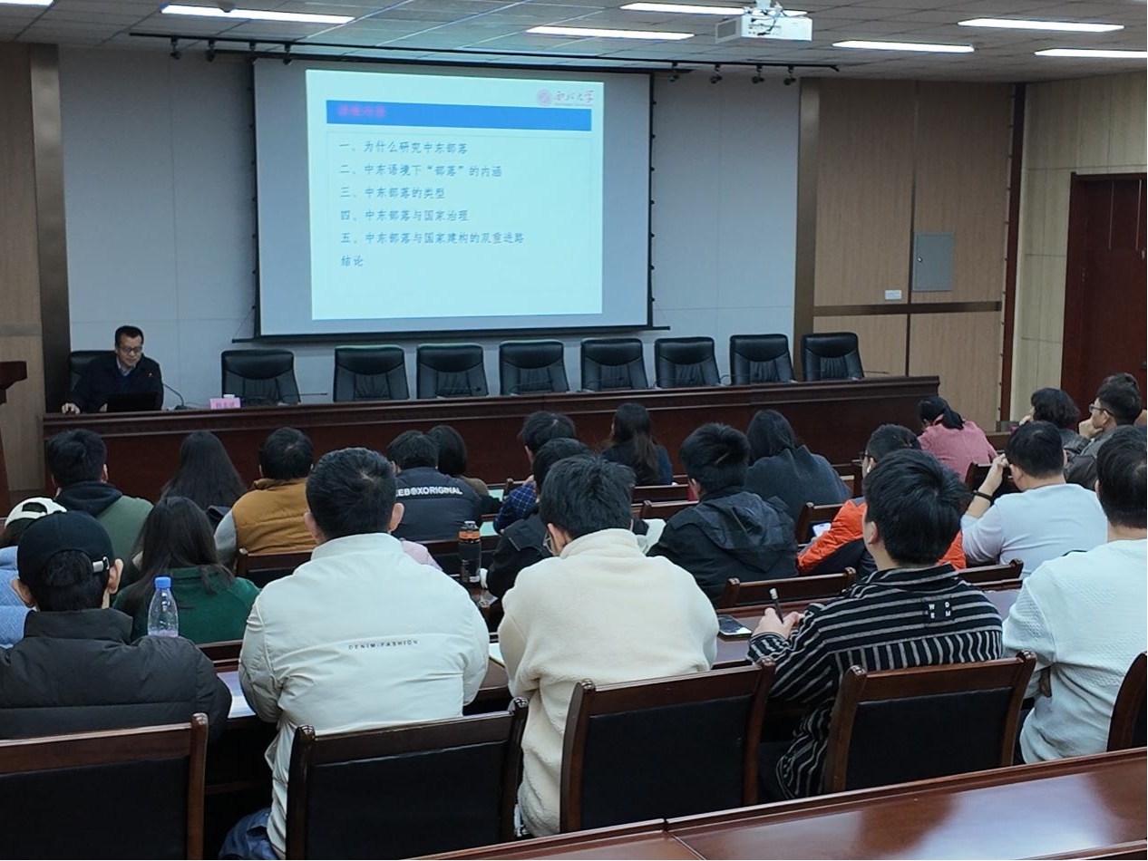 12月4日上午,區(qū)域國別研究院邀請西北大學韓志斌教授在雁塔校區(qū)會議中心第五會議室作了題為《中東部落:概念認知、類型演化與社會治理》的學術講座。講座由區(qū)域國別研究院執(zhí)行院長劉輝主持,研究院專兼職研究人員及工程技術與管理人員國際化能力培訓班學員共同聆聽了報告。