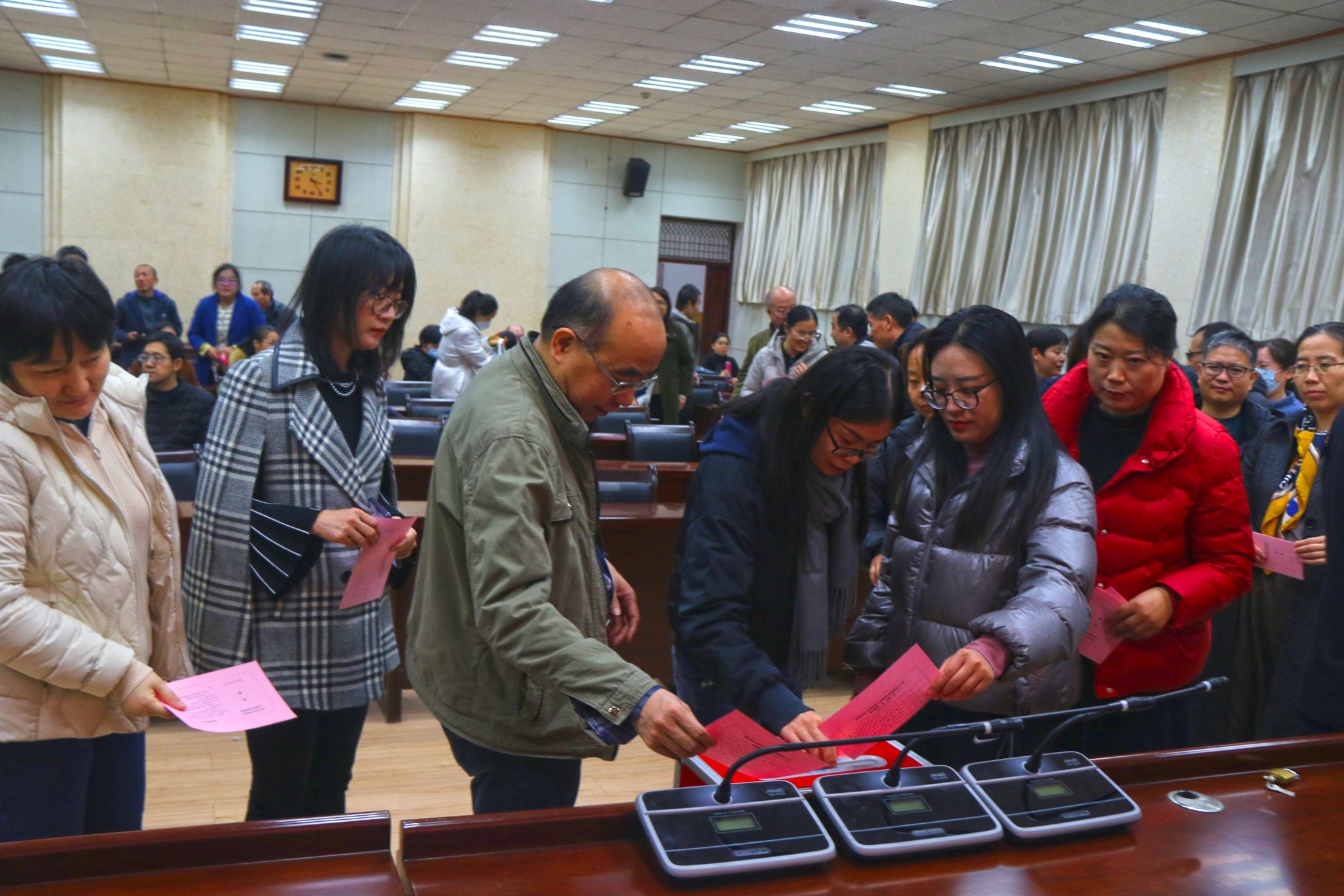 隨后,大會(huì)表決通過了監(jiān)票人、計(jì)票人名單,以無記名投票的方式進(jìn)行選舉。最終,劉孝艷、黃毓虎、趙子宇、白亮、賀曉麗、高楠、溫俊青7名同志當(dāng)選為理學(xué)院第九屆部門工會(huì)委員會(huì)委員。會(huì)后,理學(xué)院第九屆部門工會(huì)委員會(huì)召開第一次全體會(huì)議,選舉劉孝艷為理學(xué)院工會(huì)主席,黃毓虎為理學(xué)院工會(huì)副主席,并對(duì)其他委員工作進(jìn)行了分工。