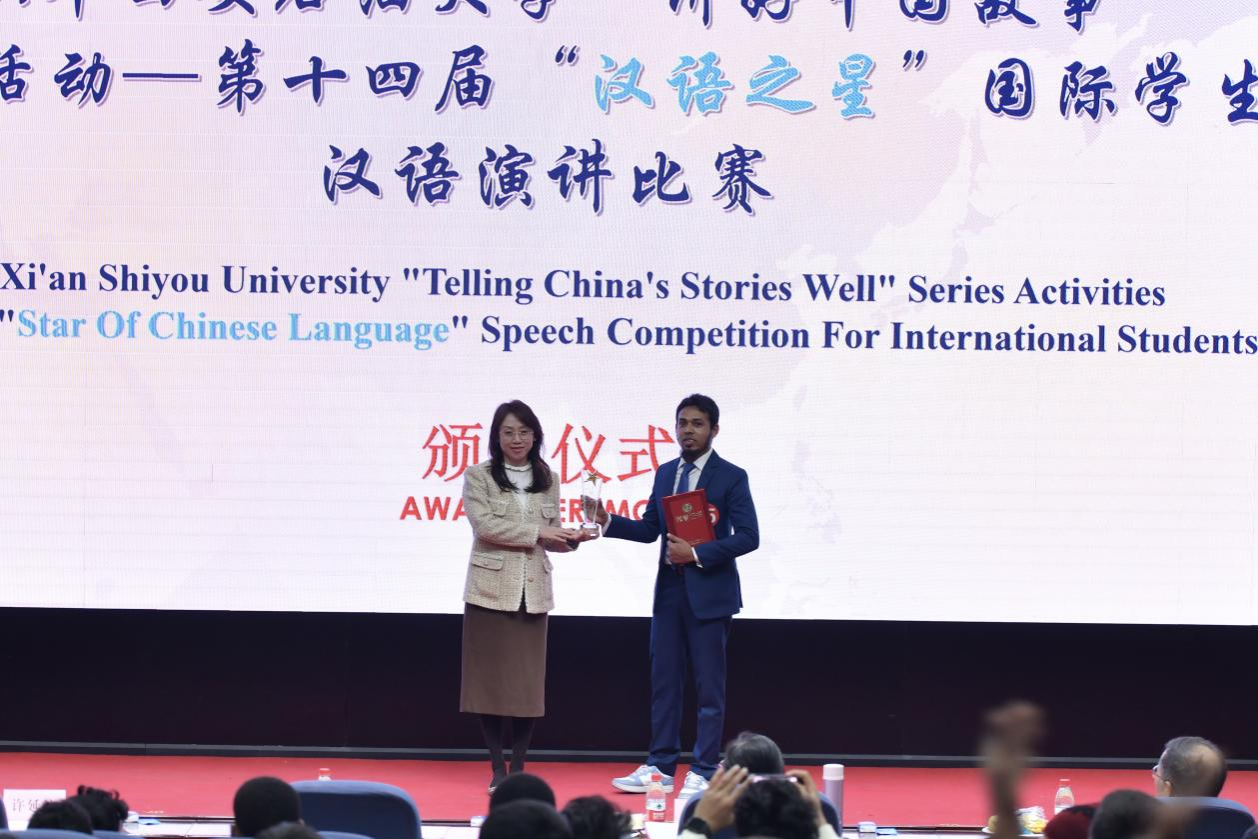 經(jīng)過激烈的角逐,來自孟加拉國(guó)的哈桑同學(xué)憑借其出色的演講內(nèi)容和表現(xiàn),榮獲一等獎(jiǎng)。申李平安、簡(jiǎn)愛克、伊卡三名同學(xué)獲得二等獎(jiǎng),韓沐恩、曾美麗、七人組合、月亮及拉德蒙五組選手獲得了三等獎(jiǎng)。學(xué)院院長(zhǎng)董皓、副院長(zhǎng)秦璟及特邀評(píng)委代表許延浪教授分別為獲獎(jiǎng)選手頒發(fā)了獎(jiǎng)杯和獲獎(jiǎng)證書。特邀評(píng)委代表柯卓英教授對(duì)比賽進(jìn)行了總結(jié)點(diǎn)評(píng)。