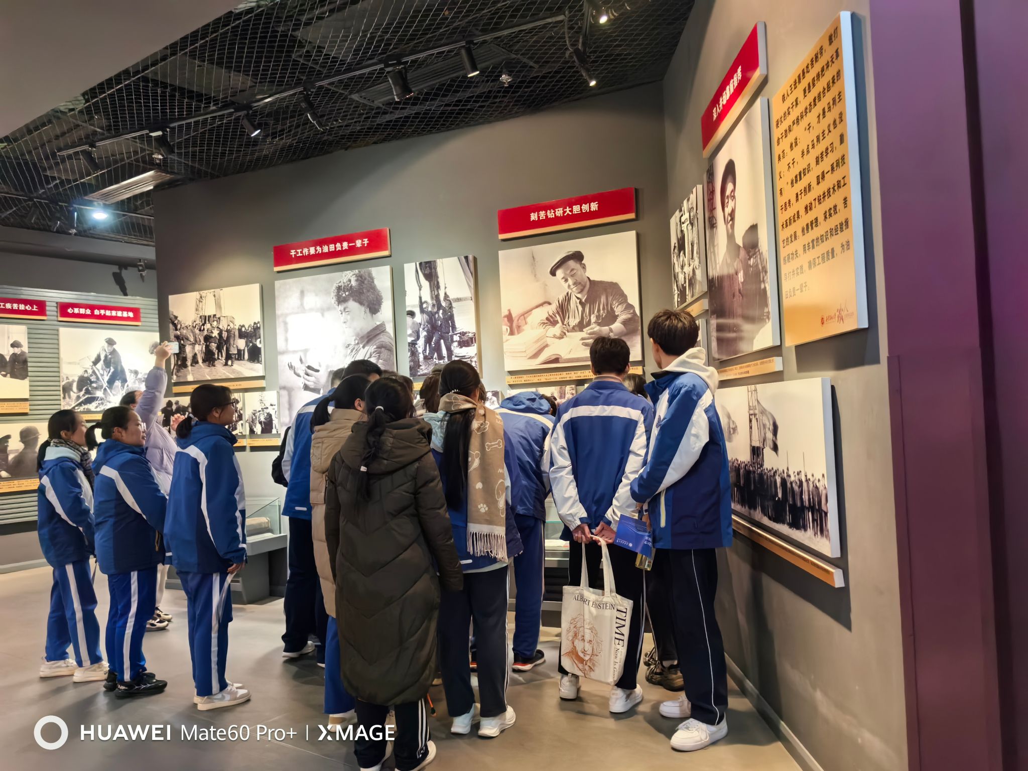 研學(xué)活動(dòng)首站來到鐵人紀(jì)念館和校史館,在講解員們的引領(lǐng)下,五高師生代表分為兩組進(jìn)行了參觀。在鐵人紀(jì)念館,通過講解員細(xì)致的講解,結(jié)合一幅幅珍貴的照片、一件件實(shí)物展品,五高師生深切感受到鐵人47年的不凡人生歷程,深刻領(lǐng)悟了鐵人精神的內(nèi)涵。在校史館,跟隨講解員的步伐,五高師生認(rèn)真聆聽了我校的建設(shè)發(fā)展歷程,透過一個(gè)個(gè)展板,一件件歷史實(shí)物,大家學(xué)習(xí)了先輩們篳路藍(lán)縷艱苦辦學(xué)的奮斗精神、專家學(xué)者潛心育人的優(yōu)秀事跡和畢業(yè)生扎根祖國(guó)大地回饋社會(huì)的愛國(guó)情懷,深切感受到我校的校園文化和學(xué)習(xí)氛圍,也激發(fā)起內(nèi)心對(duì)大學(xué)生活的向往和憧憬。
