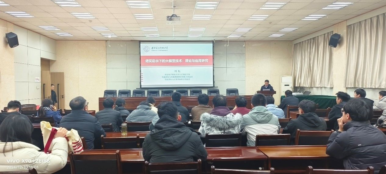12月10日下午,電子工程學(xué)院邀請西安電子科技大學(xué)劉旭博士在雁塔校區(qū)第三會議室作了題為《諾獎啟示下的人工智能大模型技術(shù)-理論與應(yīng)用研究》的學(xué)術(shù)報告。報告會由學(xué)院副院長任志平主持,共70多名師生現(xiàn)場聆聽了報告。