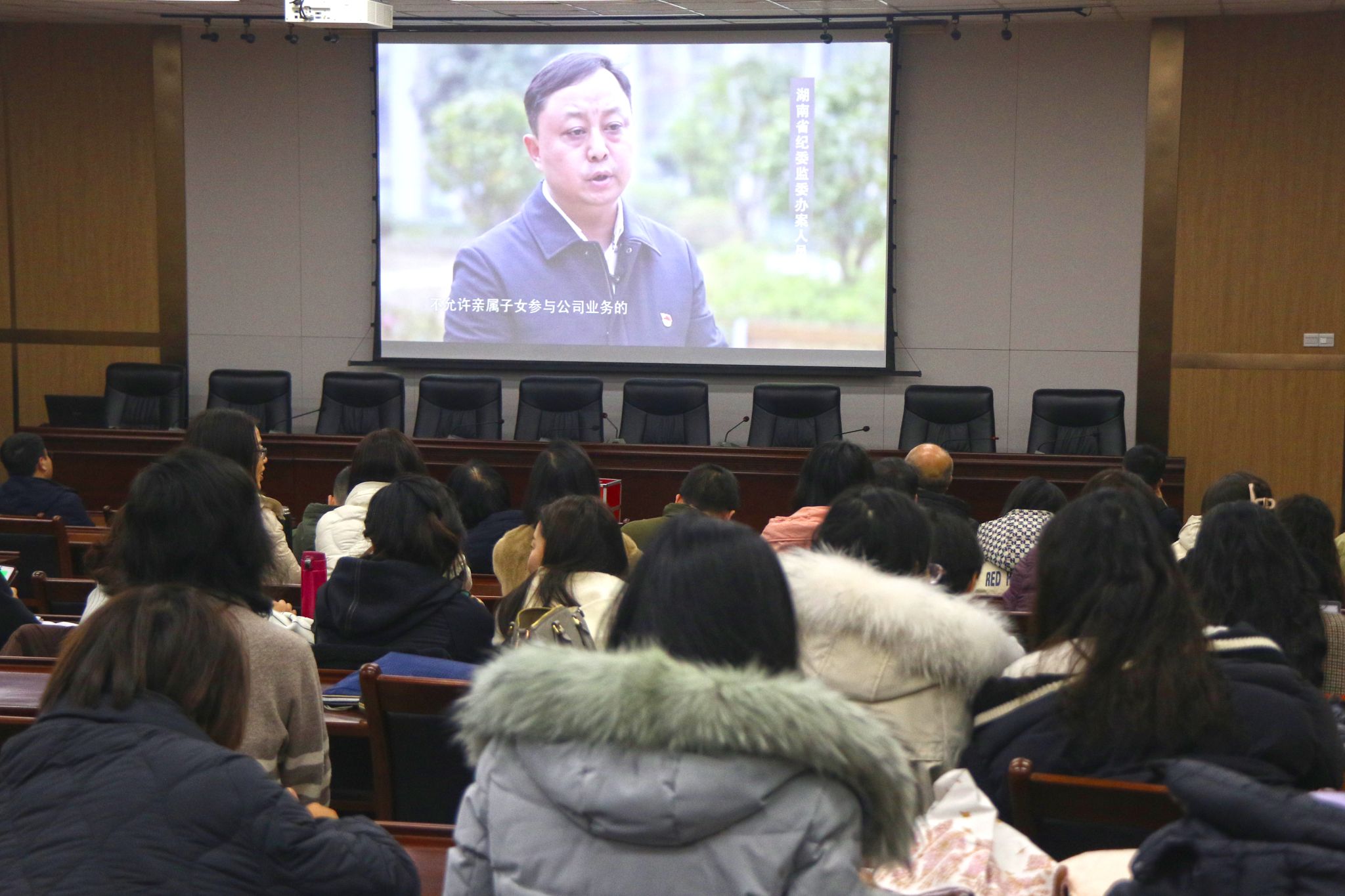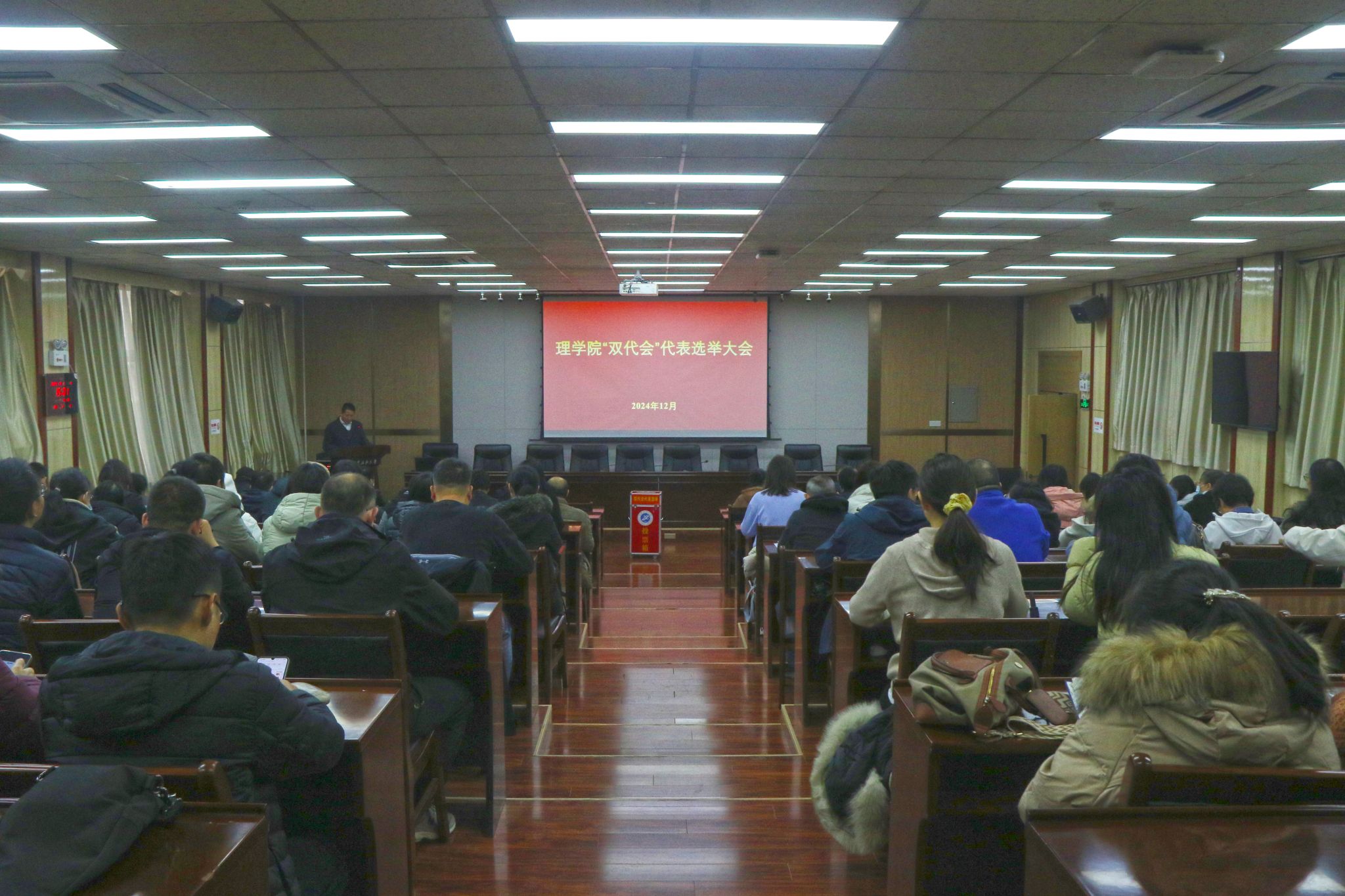 計票間隙,理學院副院長折延宏對學院申報2025年度國家自然科學基金項目組織情況進行了介紹,并傳達了學校申報工作推進會精神,對做好近期申報有關工作進行了再強調。隨后,按照校紀委通知要求,組織全體教職工黨員集體觀看了警示教育片,開展了警示教育活動。
