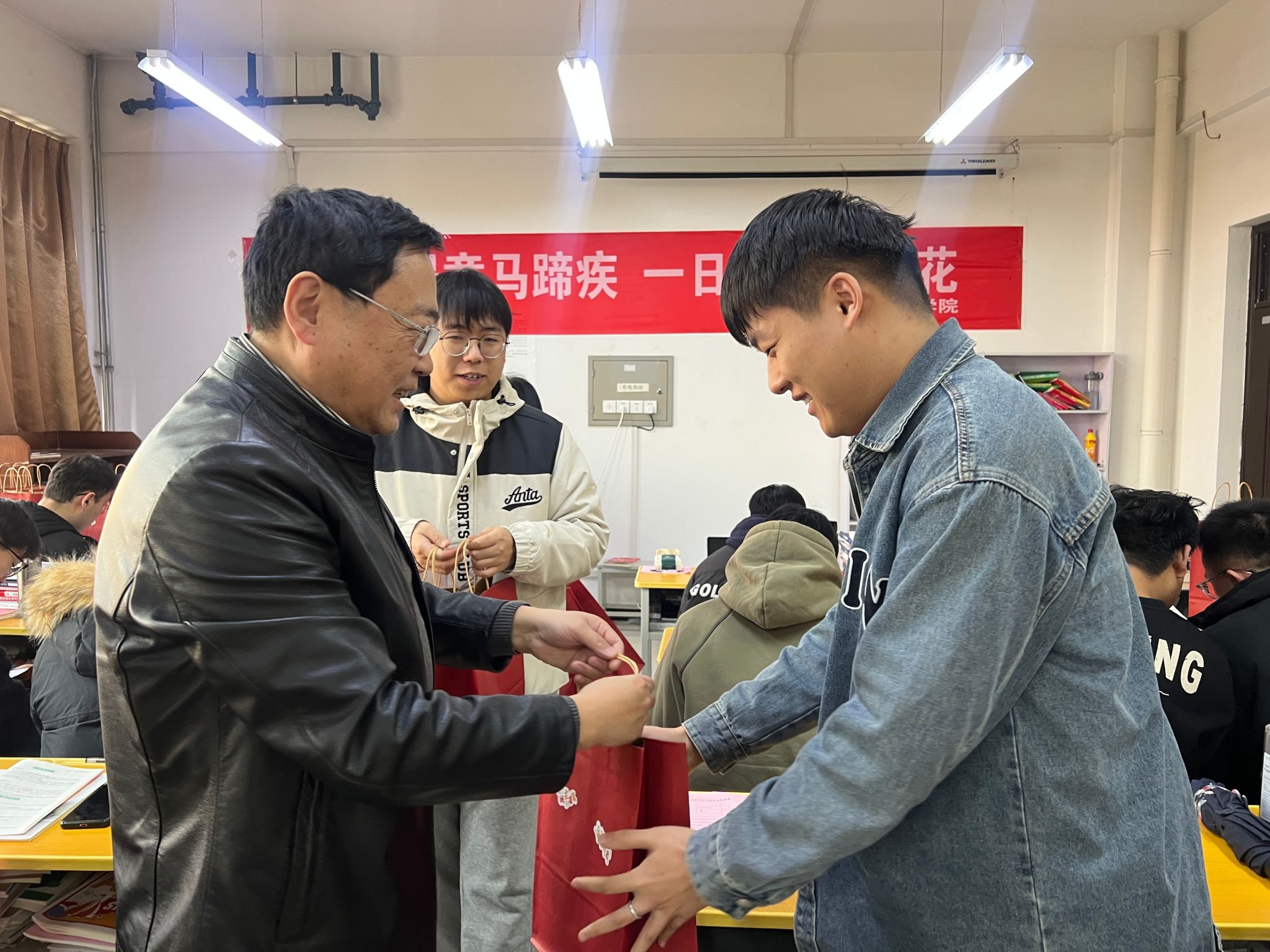 在2025年全國(guó)碩士研究生招生考試到來之際,為幫助考研學(xué)生堅(jiān)定考研信心,緩解備考?jí)毫?,激發(fā)前進(jìn)動(dòng)力,學(xué)院黨委書記馬行天、2021級(jí)輔導(dǎo)員李佩琦于2024年12月16日攜暖心考研大禮包走訪考研自習(xí)室,慰問考研學(xué)子。