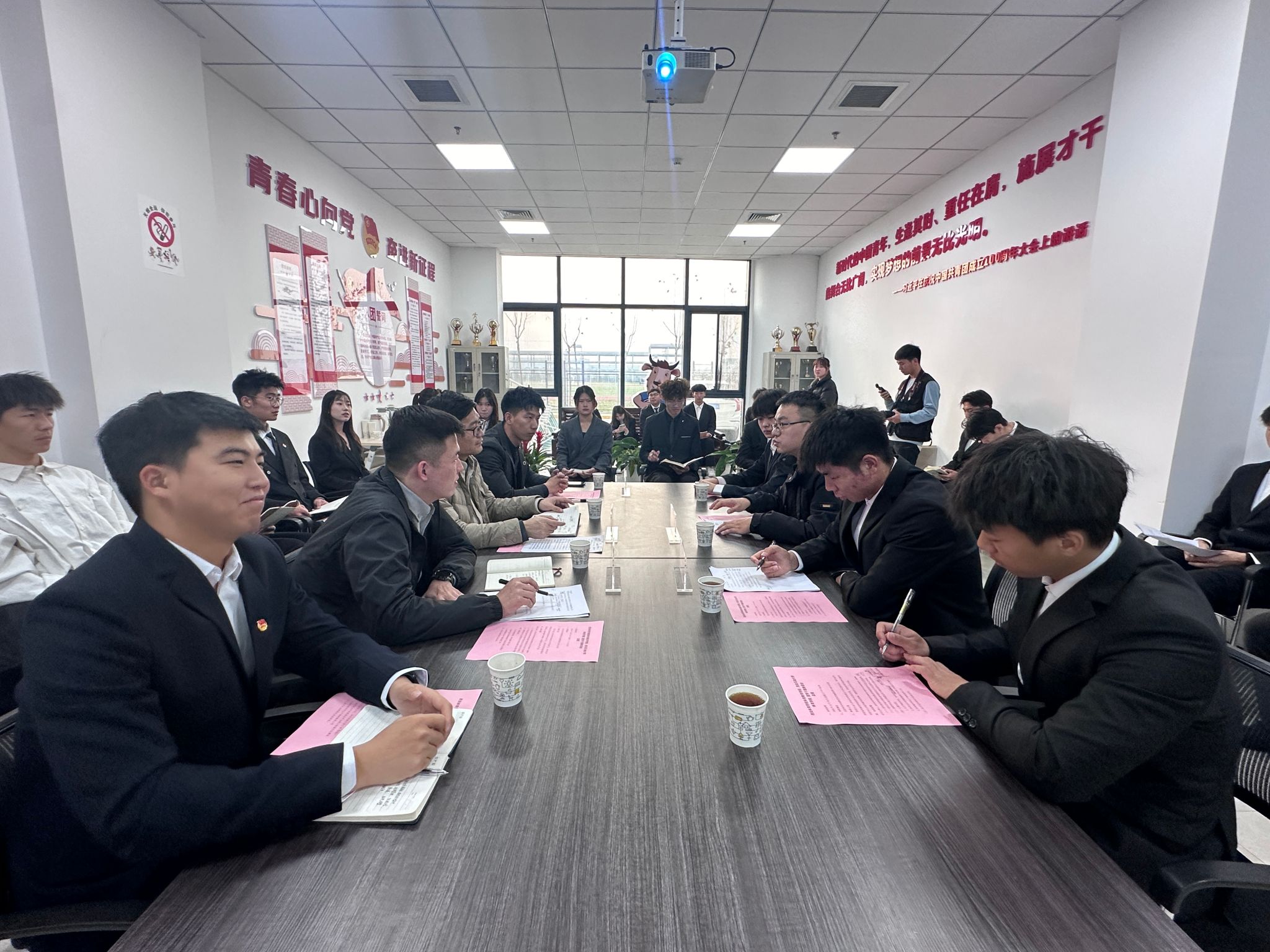 隨后,在交流環(huán)節(jié)中,兩個學院學生會主席團負責同學就各自學院的學生會組織進行了介紹,并就如何立足于學院、學校實際情況開展學生會工作進行了經(jīng)驗分享。此外,雙方學生會成員就品牌形象建設、學生會組織建設、新媒體平臺管理維護、部門職能任務分工、活動創(chuàng)新與實施等方面進行了交流討論,各自詳盡介紹了學生會的整體架構(gòu)和運行模式,并從職能機制到組織運轉(zhuǎn)等方面對學生會工作所面臨的機遇和挑戰(zhàn)進行了全方位的交流,闡述了各自組織未來發(fā)展的系列構(gòu)想。最后,宗月民對本次交流活動進行了總結(jié)講話,希望同學們能夠珍惜這次交流學習的機會,不斷提高自身素質(zhì)和能力水平,為團學工作做出更多的貢獻。