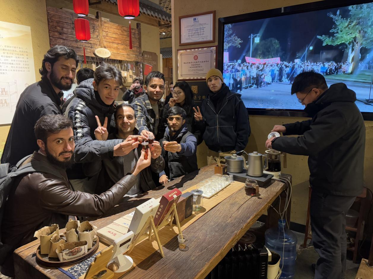 活動最后,留學(xué)生們走進中國茯茶文化博物館,仔細聽取講解員對茯茶歷史淵源、制作工藝、品鑒方法和文化價值的介紹,親身體驗茯茶的制作過程,領(lǐng)略中國茶文化的博大精深。