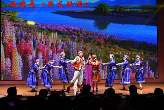 晚會(huì)在學(xué)校國(guó)際學(xué)生合唱團(tuán)帶來(lái)的《早安中國(guó)》深情吟唱中拉開(kāi)帷幕。學(xué)生們帶來(lái)了豐富多彩的表演,包括蒙古舞蹈《歡樂(lè)起舞》、阿富汗舞蹈《律動(dòng)樂(lè)章》、吉爾吉斯斯坦舞蹈《偉大的遷徙》等,展現(xiàn)了多元文化的魅力。來(lái)自蒙古的那木海以一曲《你要跳舞嗎》點(diǎn)燃現(xiàn)場(chǎng)氣氛,來(lái)自剛果(金)的菲利普和來(lái)自莫桑比克的路易莎帶來(lái)的歌曲彈唱《蝴蝶》悠揚(yáng)動(dòng)聽(tīng),學(xué)校教授合唱團(tuán)舞蹈隊(duì)也帶來(lái)了精彩的歌舞表演《新龍船調(diào)》,展現(xiàn)了師生們的活力風(fēng)采。此外,來(lái)自22國(guó)45位同學(xué)攜手打造的服裝秀驚艷全場(chǎng),絢麗多彩的各國(guó)服飾一一亮相,彰顯著世界多姿文化的魅力交融。在孟加拉國(guó)蘇茹等同學(xué)活力四射的舞蹈串燒《舞動(dòng)青春》中,晚會(huì)圓滿落下帷幕。