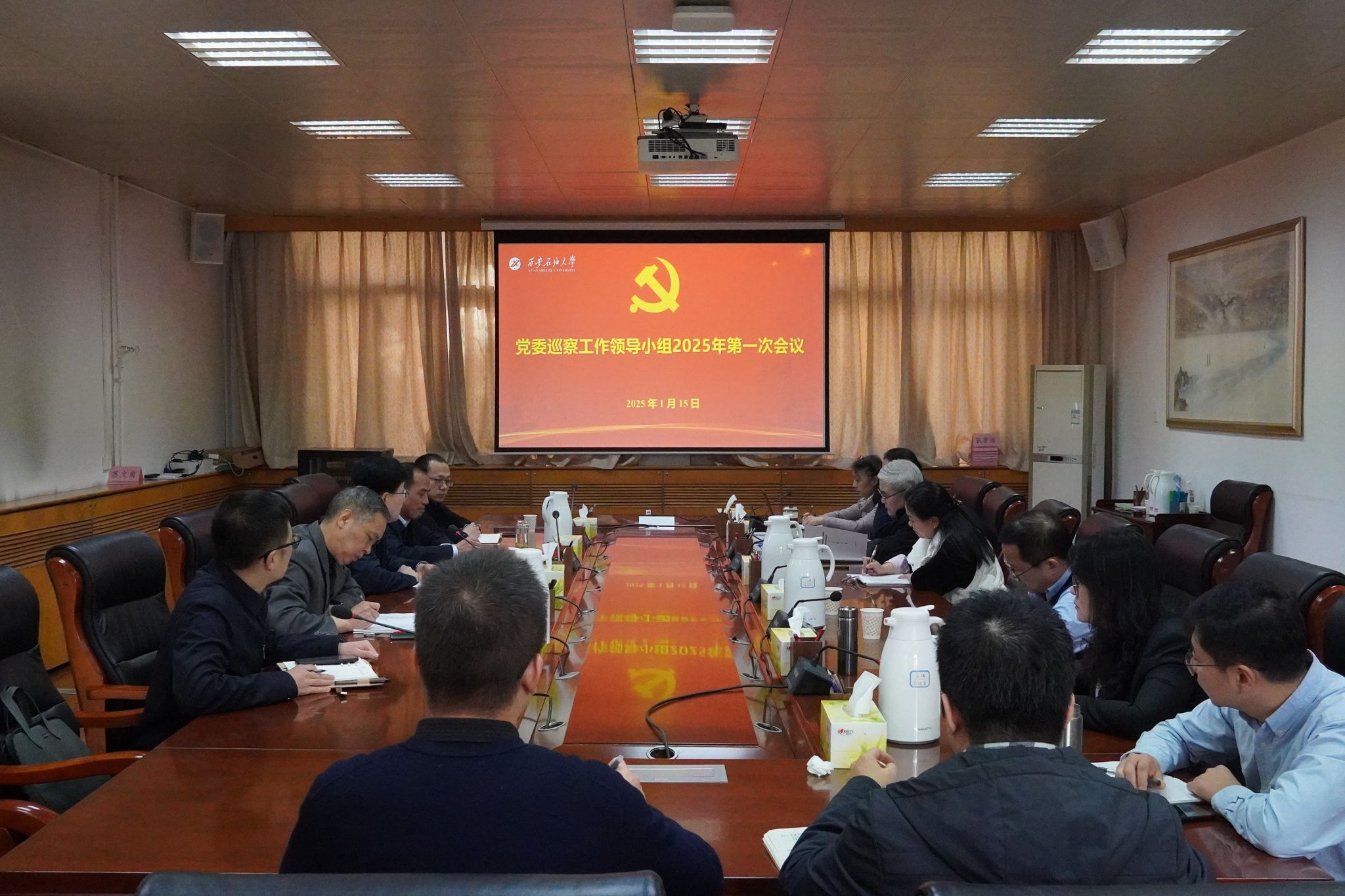 1月15日上午,學(xué)校在雁塔校區(qū)辦公樓五樓會(huì)議室召開黨委巡察工作領(lǐng)導(dǎo)小組2025年第一次會(huì)議,聽取第一巡察組關(guān)于巡察計(jì)算機(jī)學(xué)院黨委和音樂系黨總支有關(guān)情況的中期匯報(bào)。校黨委副書記、紀(jì)委書記、監(jiān)察專員、黨委巡察工作領(lǐng)導(dǎo)小組副組長王輝強(qiáng)出席會(huì)議并講話。校黨委巡察工作領(lǐng)導(dǎo)小組成員單位和黨委統(tǒng)戰(zhàn)部、黨委學(xué)生工作部、黨委保衛(wèi)部、研究生工作部主要負(fù)責(zé)人和第一巡察組全體成員參加會(huì)議。