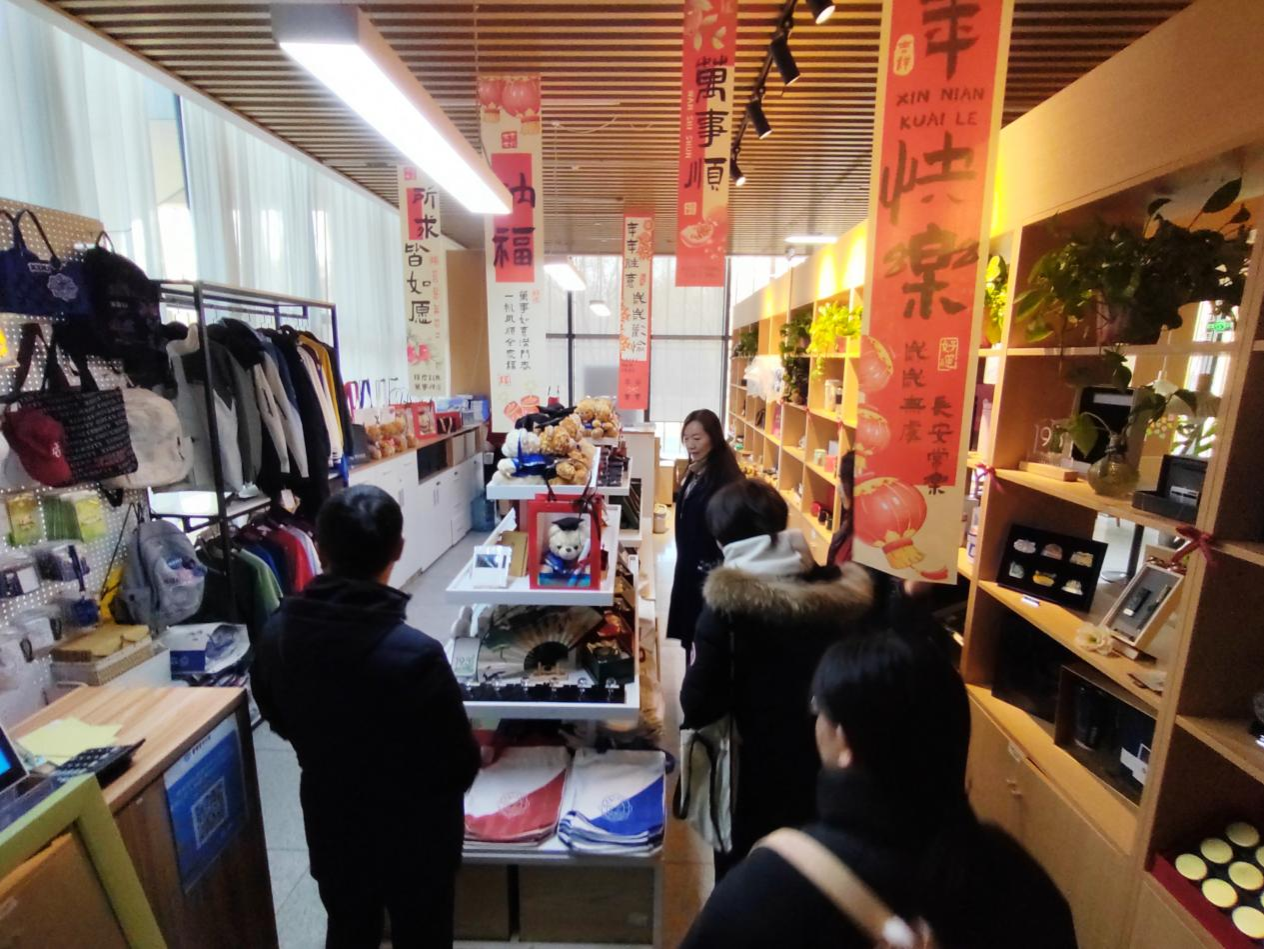 王曉一行在陳世兵陪同下參觀了位于西安電子科技大學(xué)南校區(qū)的西安壹玖叁壹學(xué)術(shù)交流服務(wù)有限公司旗下文創(chuàng)板塊實(shí)體店,深入細(xì)致了解了西安電子科技大學(xué)文創(chuàng)產(chǎn)品的設(shè)計(jì)、研發(fā)、定制、推廣過(guò)程及經(jīng)營(yíng)現(xiàn)狀。這里店面寬敞明亮,時(shí)尚典雅,各色精美的文創(chuàng)產(chǎn)品以西電文化特色元素為設(shè)計(jì)基礎(chǔ),傳遞著對(duì)校園歲月的一份眷戀,承載了學(xué)生和校友對(duì)母校的情感紀(jì)念和精神歸屬。這里不單打造了一個(gè)定制、展示和銷(xiāo)售文創(chuàng)產(chǎn)品的窗口,也成為充滿校園文藝氣息的休閑所在,記錄了西電的歷史和傳統(tǒng),喚起人們對(duì)校園生活和大學(xué)文化的回憶。校園文創(chuàng)通過(guò)文創(chuàng)實(shí)體店、線上小程序商城等銷(xiāo)售渠道,傳達(dá)可觸可感的歷史印記、青春回憶,傳承和弘揚(yáng)校園文化,傳播校園文化精神。