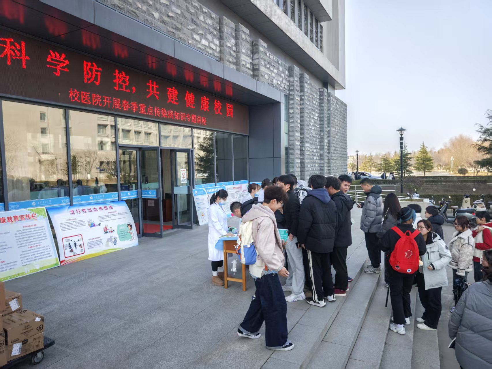 為切實做好春季傳染病防控工作,增強師生對傳染病的防范意識,2月25日、28日,校醫(yī)院分別在雁塔校區(qū)第三會議室和鄠邑校區(qū)弘石報告廳開展了校園春季重點傳染病講座和宣傳活動,兩校區(qū)師生及家屬500余人參加。