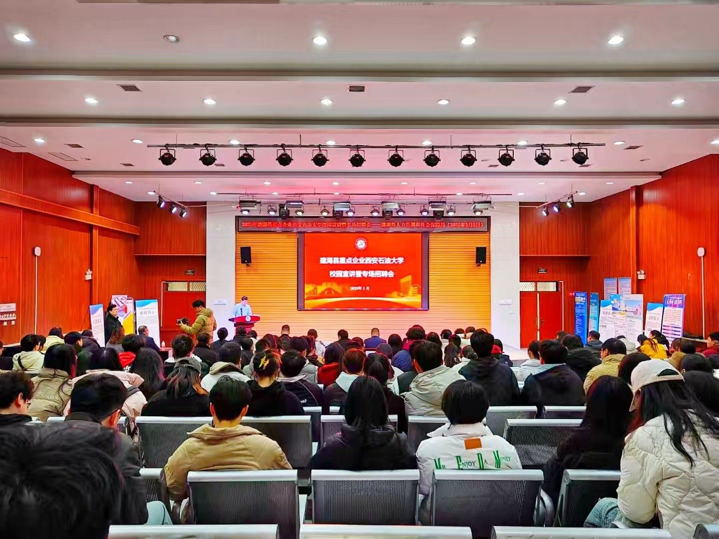 3月5日上午,建湖縣重點(diǎn)企業(yè)西安石油大學(xué)校園宣講暨專場招聘會(huì)在我校鄠邑校區(qū)崇文樓118報(bào)告廳舉辦。來校招聘期間,副校長趙健會(huì)見了建湖縣人力資源和社會(huì)保障局副局長韓建軍一行,雙方就深化校地、校企產(chǎn)學(xué)研合作進(jìn)行了交流會(huì)談。我校就業(yè)創(chuàng)業(yè)指導(dǎo)中心主任王亮出席招聘啟動(dòng)儀式并致辭,就業(yè)創(chuàng)業(yè)指導(dǎo)中心全體工作人員,2025屆畢業(yè)班輔導(dǎo)員,畢業(yè)生代表300余人參加會(huì)議。