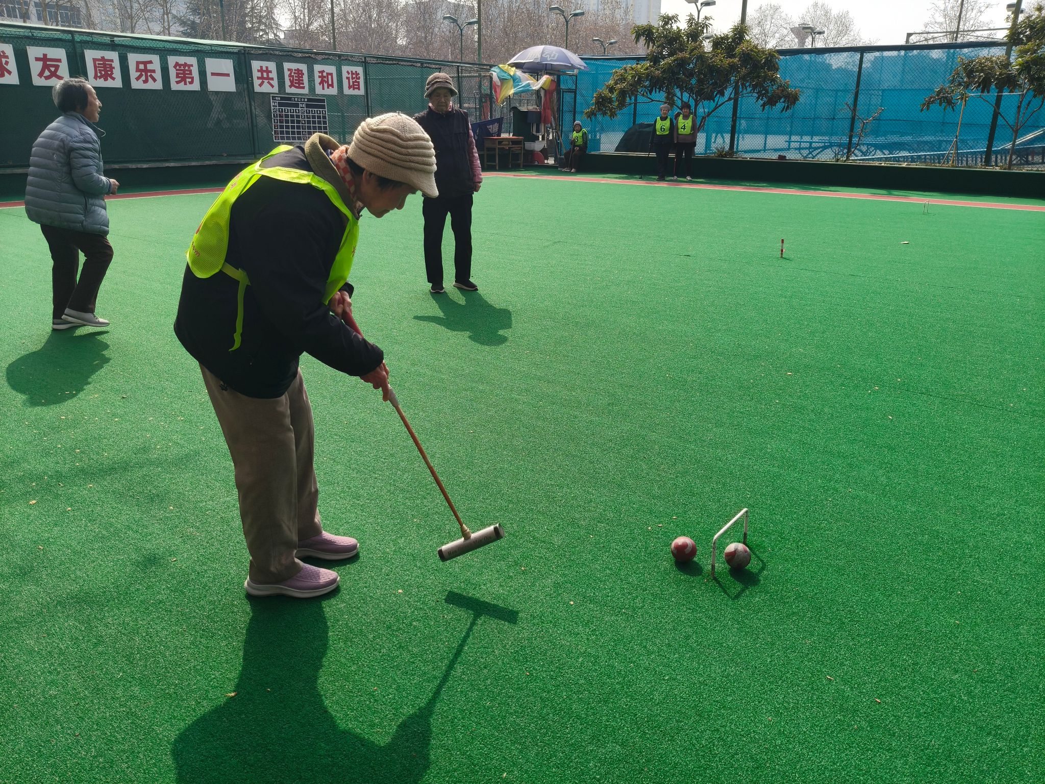 本次比賽得到了廣大離退休教職工的積極響應(yīng),共有3支代表隊參賽進行了6場緊張激烈的角逐。比賽現(xiàn)場氣氛熱烈,老同志們精神抖擻,揮桿對壘,展現(xiàn)了積極向上的精神風(fēng)貌和健康樂觀的生活態(tài)度。