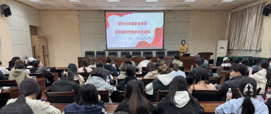 講座中,蘇敏老師結(jié)合當前國內(nèi)外形勢,以生動的案例闡釋了總體國家安全觀的深刻內(nèi)涵,圍繞政治安全、文化安全、網(wǎng)絡(luò)安全等核心領(lǐng)域,重點講解了如何認識復雜多變的國家安全形勢、我們?yōu)槭裁匆獔远ú灰频淖咧袊厣膰野踩缆?、如何落實總體國家安全觀等。針對音樂專業(yè)特色,蘇老師特別指出:“音樂作為文化傳播的重要載體,在創(chuàng)作與實踐中必須堅守意識形態(tài)陣地,警惕不良文化滲透,用作品傳遞正能量,筑牢國家文化安全防線?!?/p>
