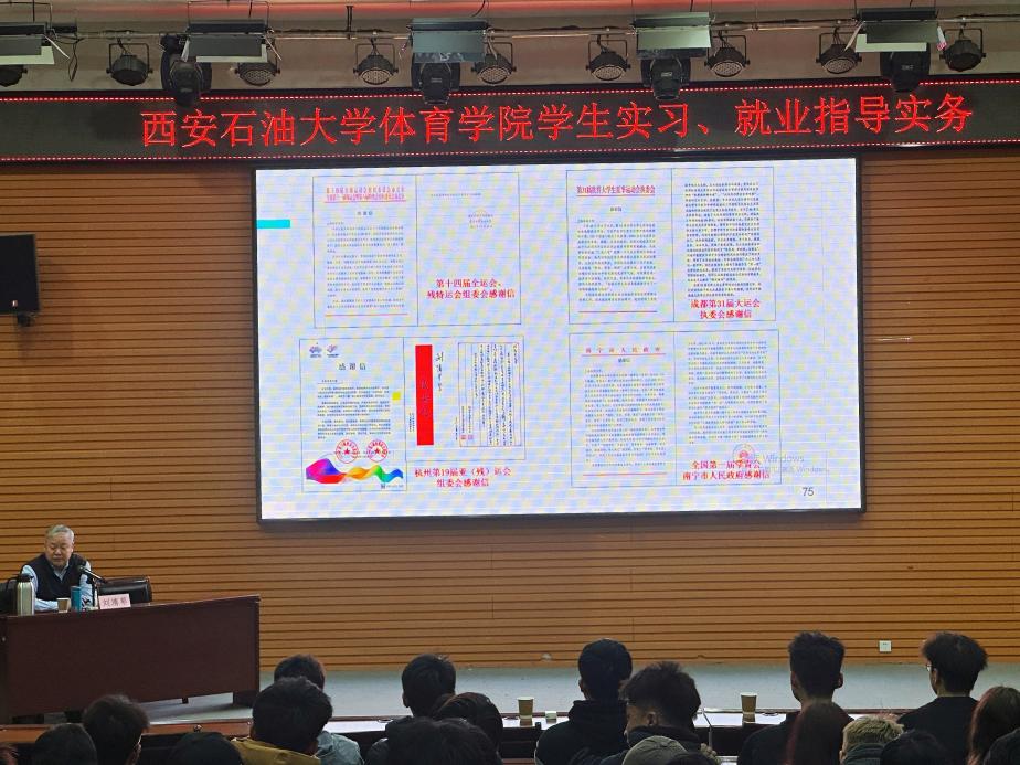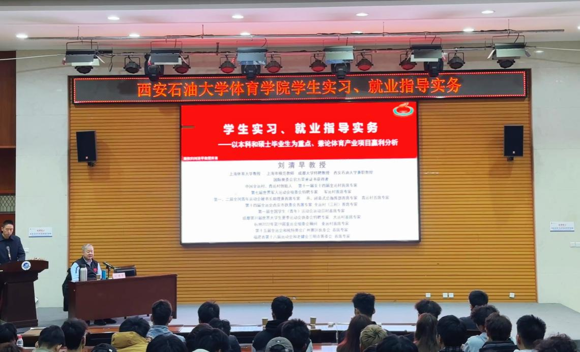 3月14日,體育學院在鄠邑校區(qū)崇文樓118報告廳舉辦學生實習與就業(yè)指導專題講座,特邀我校兼職教授、我國知名體育產(chǎn)業(yè)專家、上海體育大學劉清早教授講授題為學生實習、就業(yè)指導實務——以本科和碩士畢業(yè)生為重點、兼論體育產(chǎn)業(yè)項目贏利分析的報告。體育學院院長李壽邦、辦公室主任侯陽、學工辦主任姜國平、全體本科生及研究生共同參與。