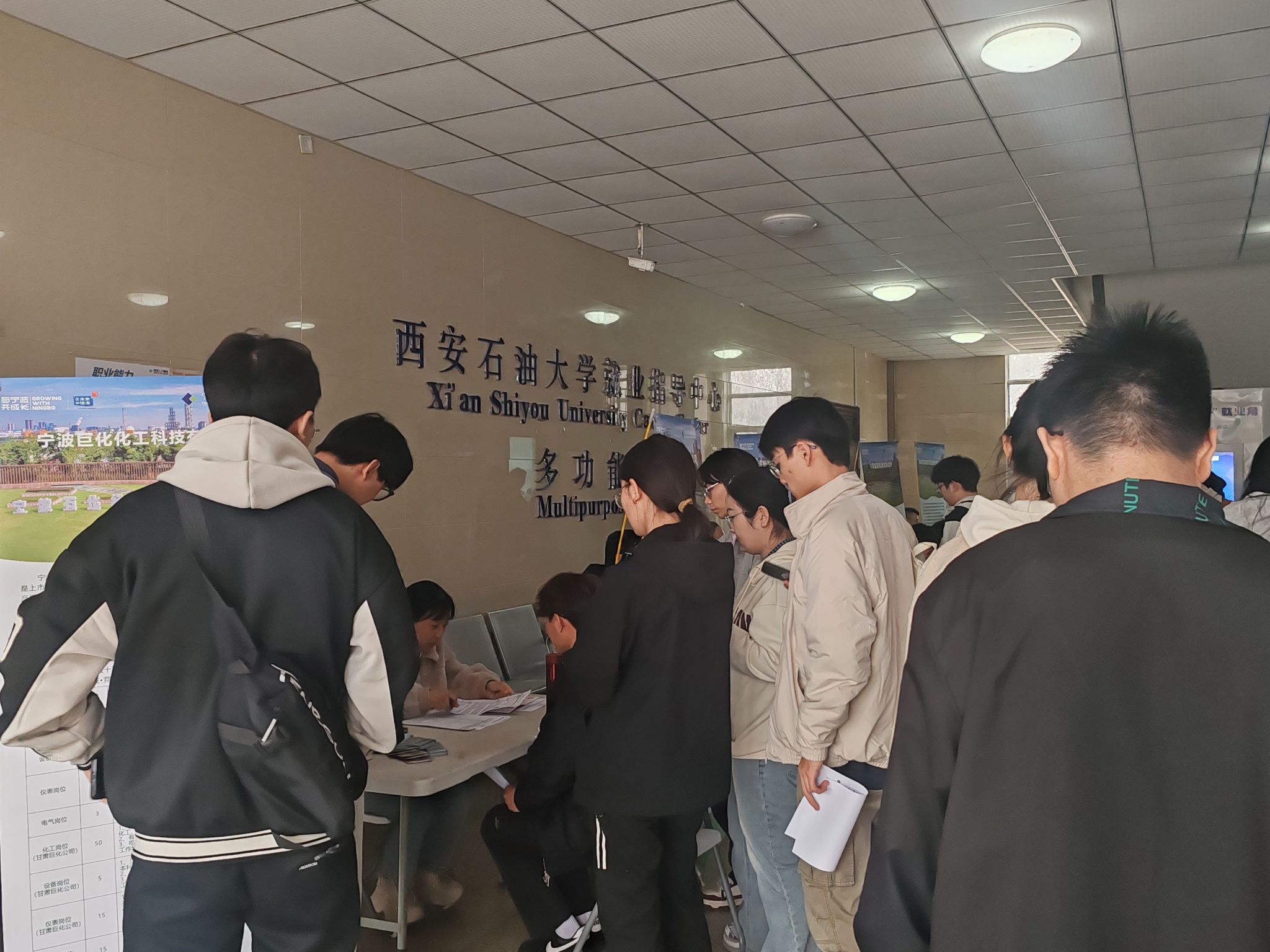 3月27日,我校在鄠邑校區(qū)崇文樓118報告廳舉辦“奔甬而來@未來IN鎮(zhèn)?!薄G色石化產(chǎn)業(yè)鏈重點企業(yè)2025屆春季校園專場招聘會。包括中石化鎮(zhèn)海煉化、寧波巨化化工、寧波博匯化工等10余家行業(yè)龍頭企業(yè)參會。我?;瘜W化工學院、機械工程學院、電子工程學院、計算機學院等390余名畢業(yè)生參加招聘。