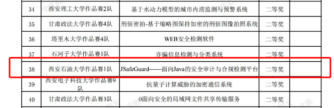 本次參賽團(tuán)隊由五名本科生組成,作品名稱為《JSafeGuard —— 面向Java的安全審計與合規(guī)檢測平臺》,通過構(gòu)建分層架構(gòu)設(shè)計、漏洞復(fù)現(xiàn)技術(shù)、安全代碼生成技術(shù)以及交互式用戶界面,實現(xiàn)了Java漏洞的分類展示與詳細(xì)演示、安全修復(fù)指導(dǎo)、審計要點明確以及安全編碼規(guī)范推廣等功能,為安全服務(wù)人員、研發(fā)人員和安全研究人員提供了一個高效、實用的Java安全研究與培訓(xùn)平臺。攻防賽則是由四名本科生組成,團(tuán)隊結(jié)合先進(jìn)的網(wǎng)絡(luò)安全技術(shù),通過相應(yīng)安全工具和算法,成功模擬并防御了一系列復(fù)雜的攻擊行為,并在規(guī)定時間內(nèi)完成任務(wù)目標(biāo)。