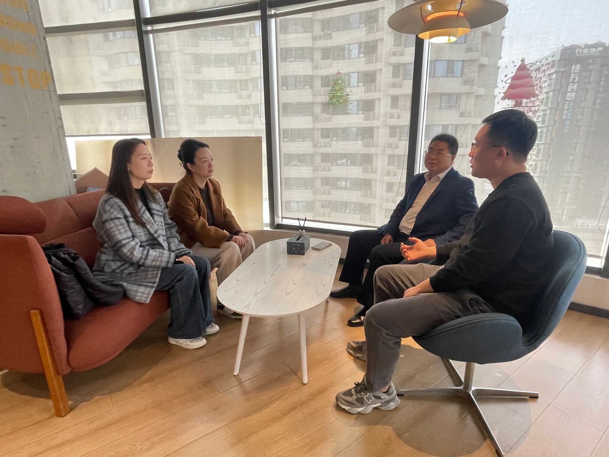 儀式結(jié)束后,余小勇一行人參觀了AF國際藝術(shù)中心的教學區(qū)、作品展示廳及辦公環(huán)境,深入了解企業(yè)運營模式與實習場景?。盛丹與企業(yè)代表圍繞學生留學申請中的常見問題展開討論,計劃未來將聯(lián)合協(xié)作,一同優(yōu)化實習指導方案,為學生提供“一站式”留學與就業(yè)服務?。