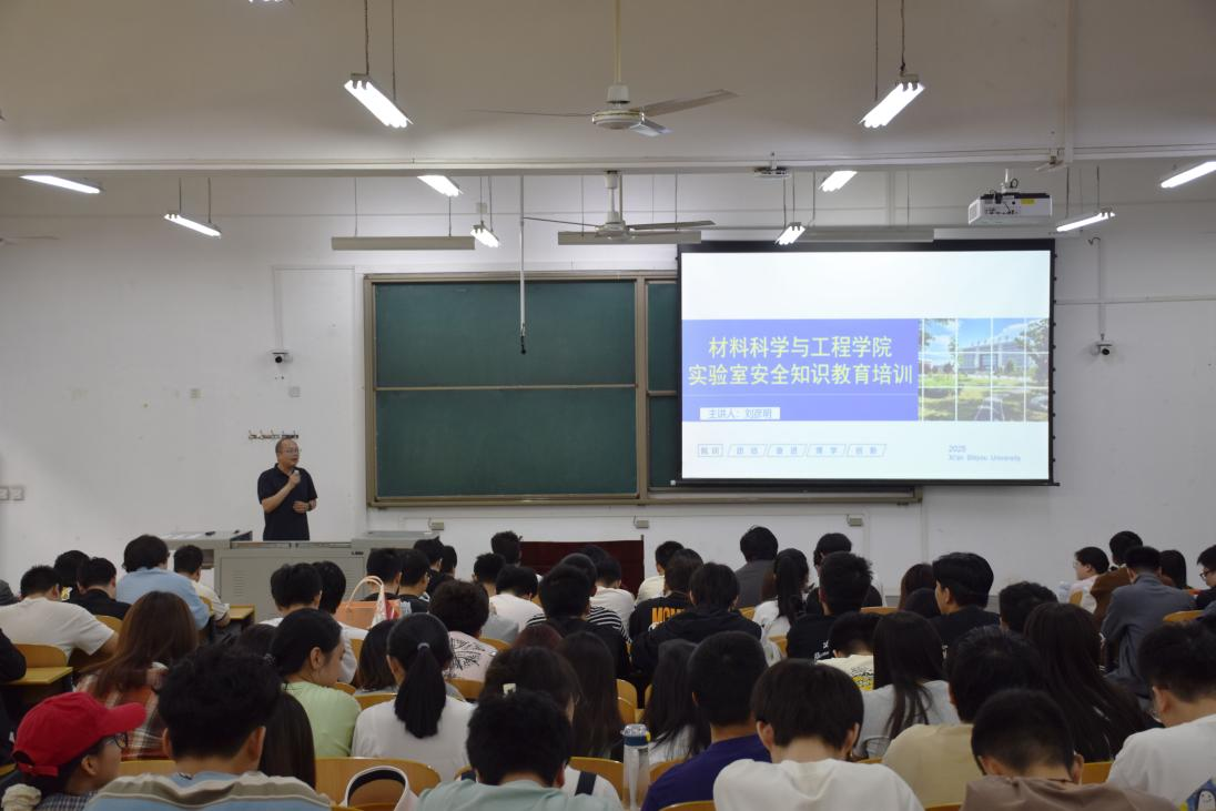 根據(jù)《陜西省教育廳辦公室關(guān)于做好2025年度高等學(xué)校實(shí)驗(yàn)室安全工作的通知》(陜教技辦〔2025〕3號(hào))精神,為進(jìn)一步貫徹落實(shí)《西安石油大學(xué)2025年安全穩(wěn)定專項(xiàng)行動(dòng)月活動(dòng)方案》文件要求,提高學(xué)生安全意識(shí),筑牢校園安全防線,切實(shí)保障學(xué)校正常教育教學(xué)秩序和師生生命財(cái)產(chǎn)安全,材料科學(xué)與工程學(xué)院于4月16日在鄠邑校區(qū)博思樓B114舉辦了2025年度實(shí)驗(yàn)室安全知識(shí)培訓(xùn)講座。本次培訓(xùn)由學(xué)院實(shí)驗(yàn)教學(xué)中心主任劉彥明擔(dān)任主講,學(xué)院2021級(jí)和2022級(jí)全體本科生共300余人參加培訓(xùn)會(huì)。培訓(xùn)會(huì)由學(xué)院學(xué)生工作辦公室副主任趙飛主持。