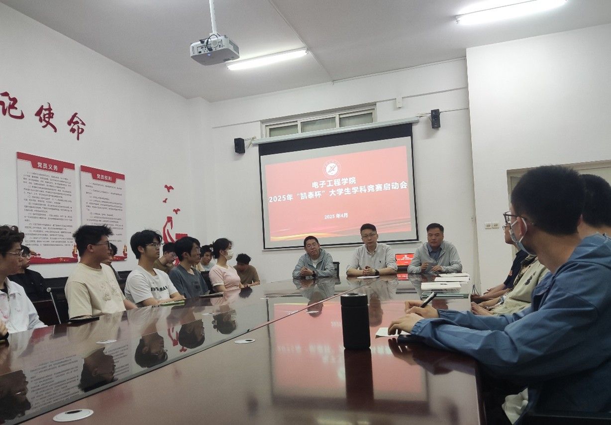 為激發(fā)學生創(chuàng)新思維,提升實踐能力,進一步推動學院學科競賽工作邁向新高度,4月22日下午,電子工程學院在行知樓321會議室召開2025年“凱泰杯”大學生學科競賽啟動會。院長李飛、實驗中心教師代表、輔導員及各年級20余名學科競賽參賽學生代表參會。