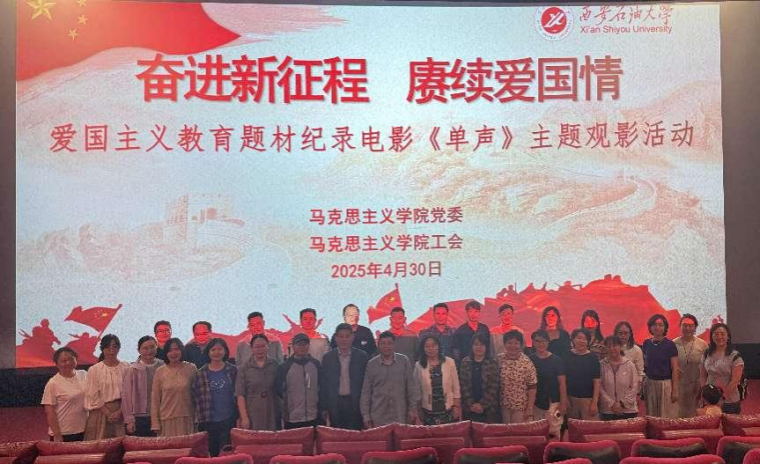 為深入學習貫徹黨的二十大精神,弘揚愛國主義精神,增強教職工的民族自豪感與責任感,4月30日下午,馬克思主義學院黨委、工會聯(lián)合組織學院教職工40余人觀看了愛國主義題材紀錄電影《單聲》。本次主題活動旨在通過生動的影像教育引導思政課教師堅定理想信念,強化使命擔當,將愛國熱情轉(zhuǎn)化為立德樹人的實際行動。